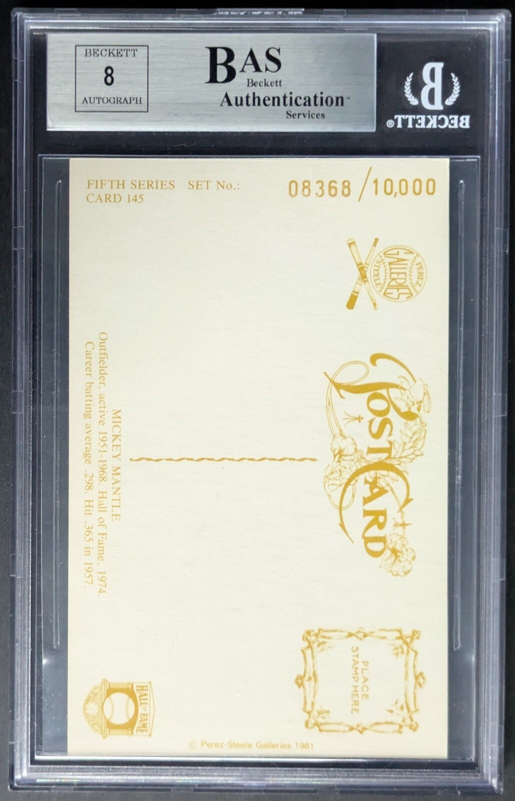 New York Yankees Mickey Mantle Signed Perez Steele Postcard Autograph Beckett 8