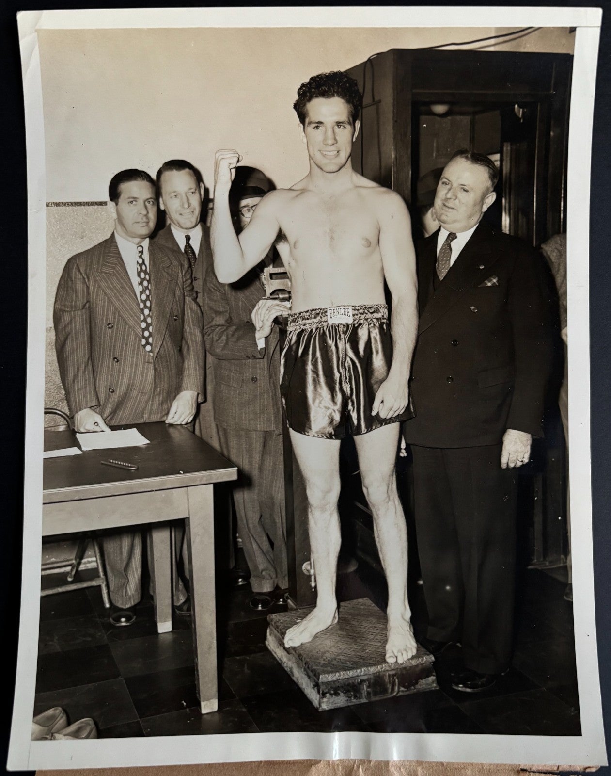- June 18, 1941 photo Billy Conn weighs in for his fight that night at the Polo Grounds vs Joe Louis.