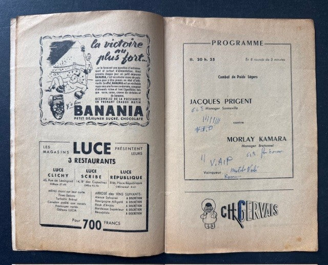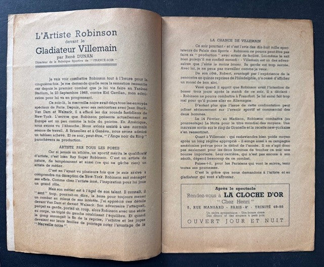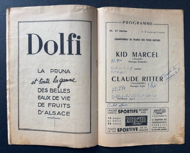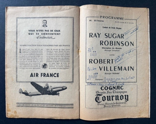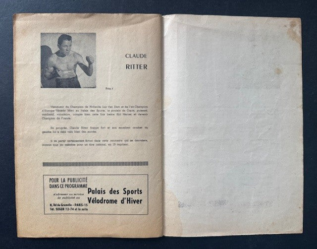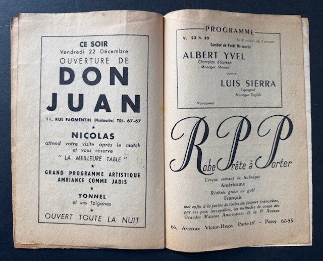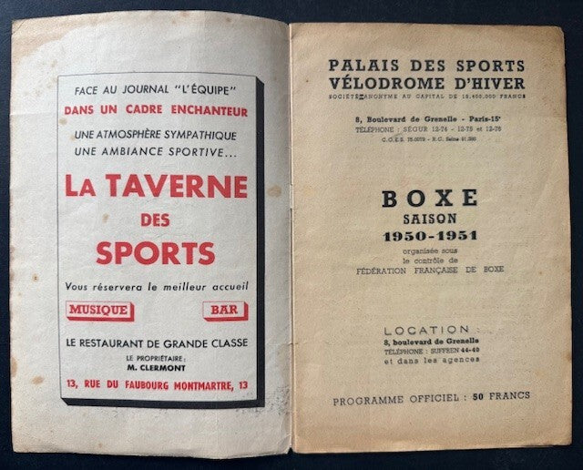 - Program for Welterweight Championship bout on Dec. 22, 1950 at Palais Des Sports in Paris, France