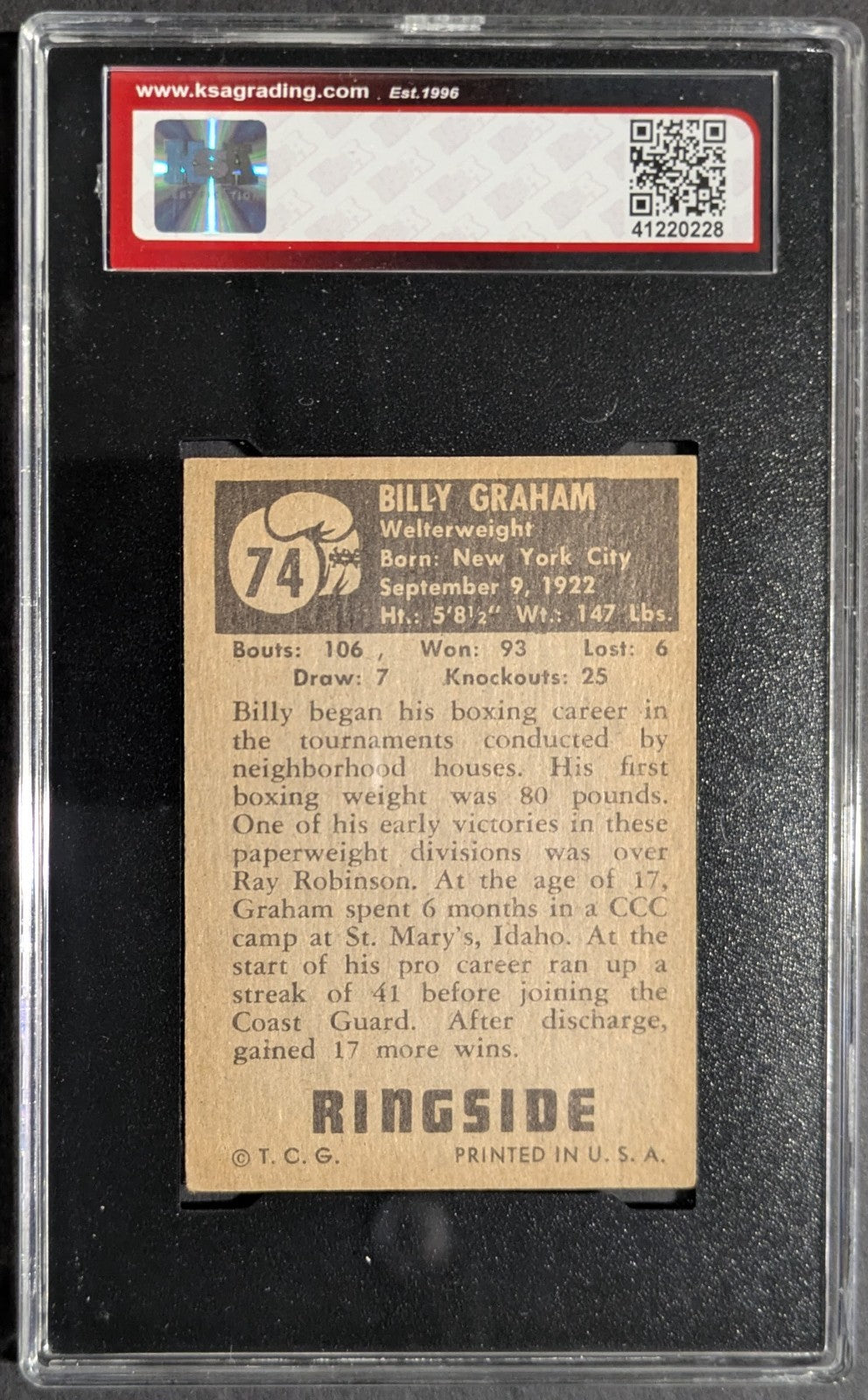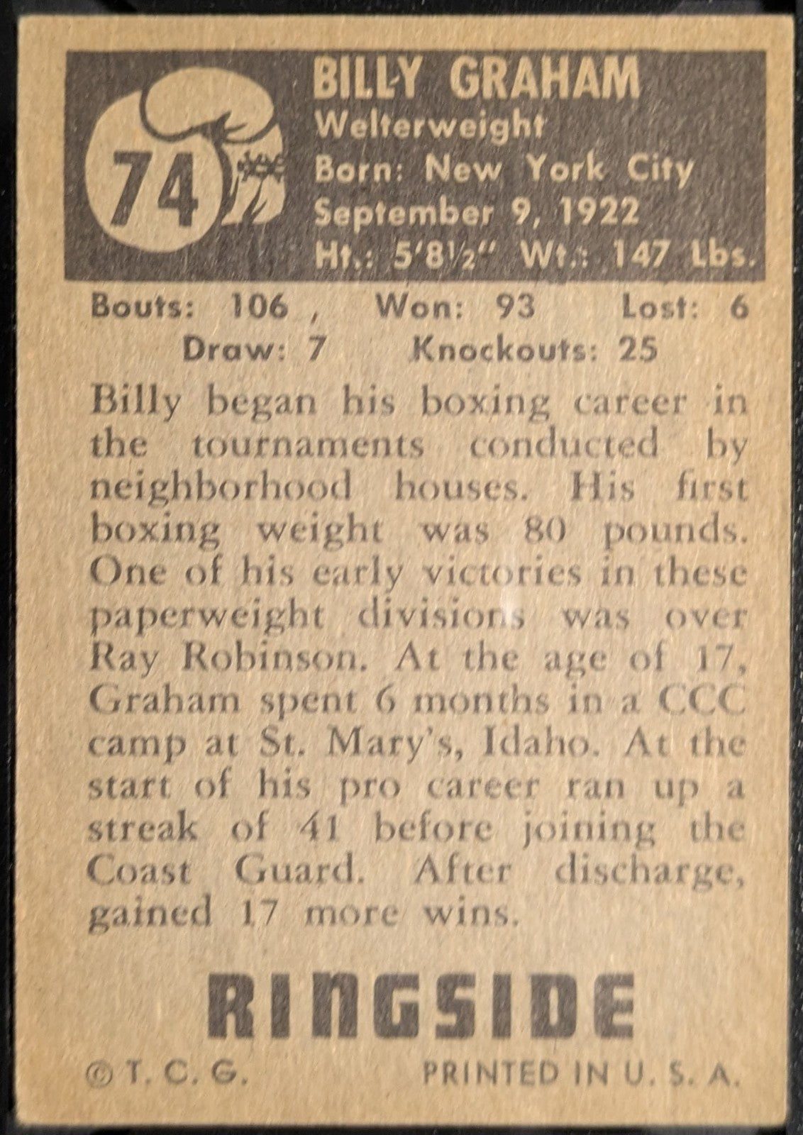 - 1951 Topps Ringside #74 Billy Graham Boxing Card