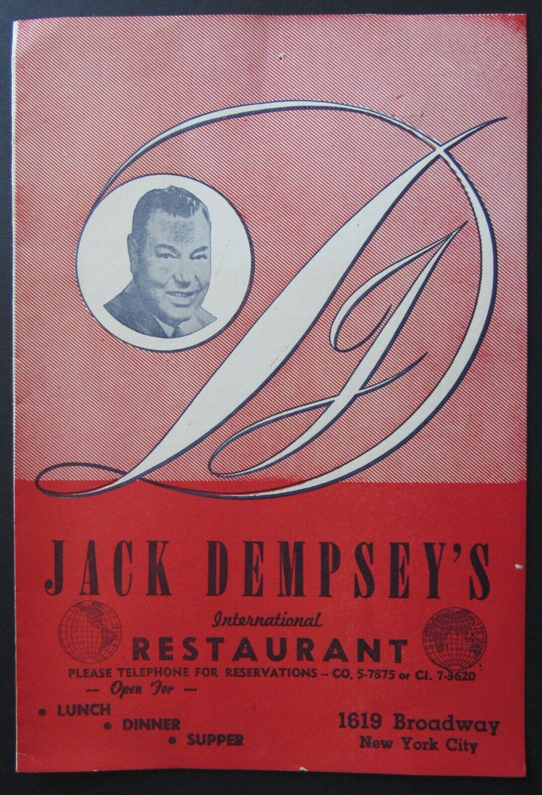 - 1964 Jack Dempsey Restaurant Menu + Special Cocktail Card