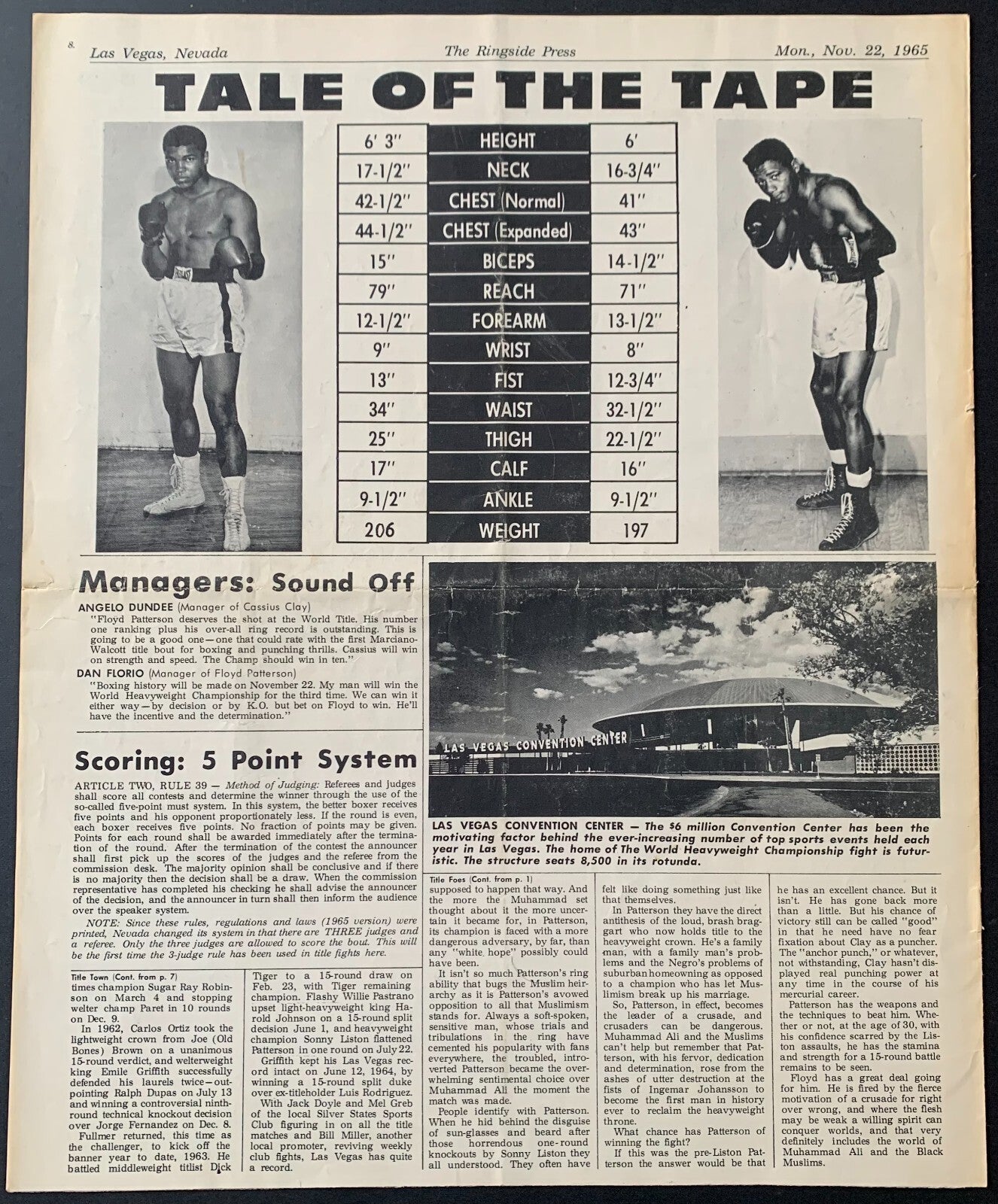 - 1965 Cassius Clay vs Floyd Patterson Heavyweight Championship Fight Program