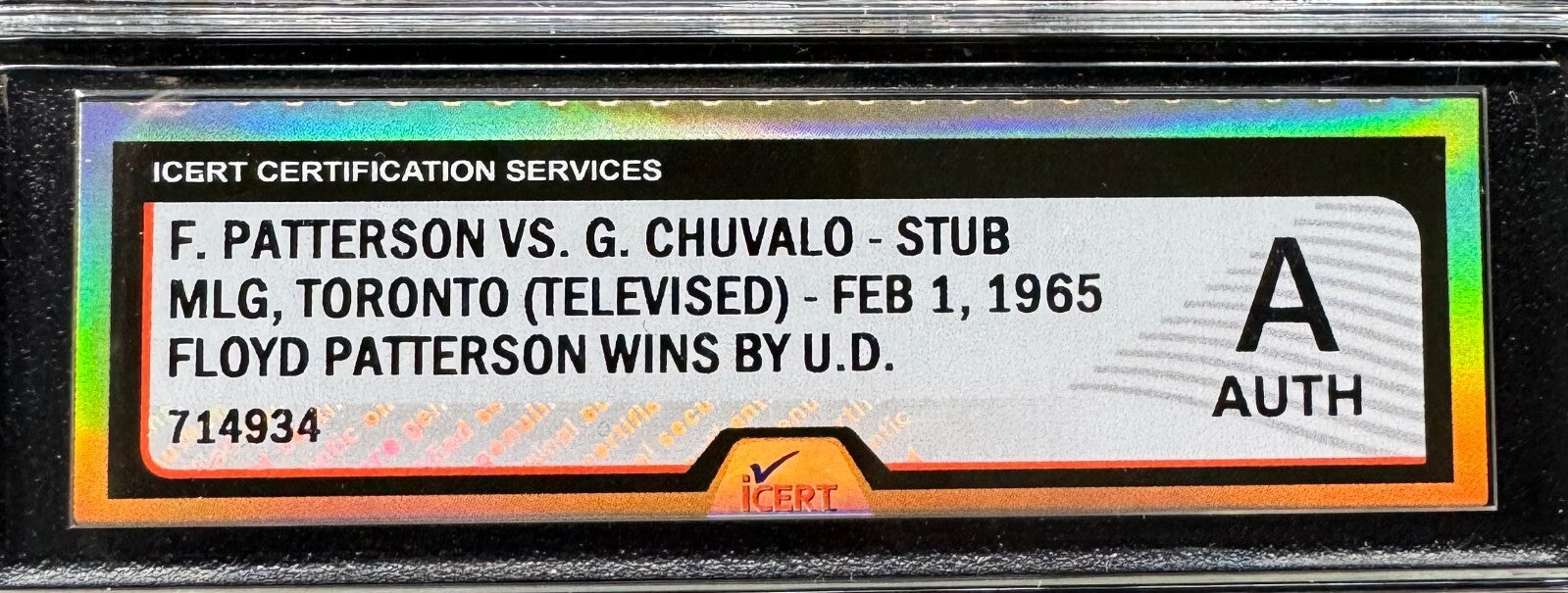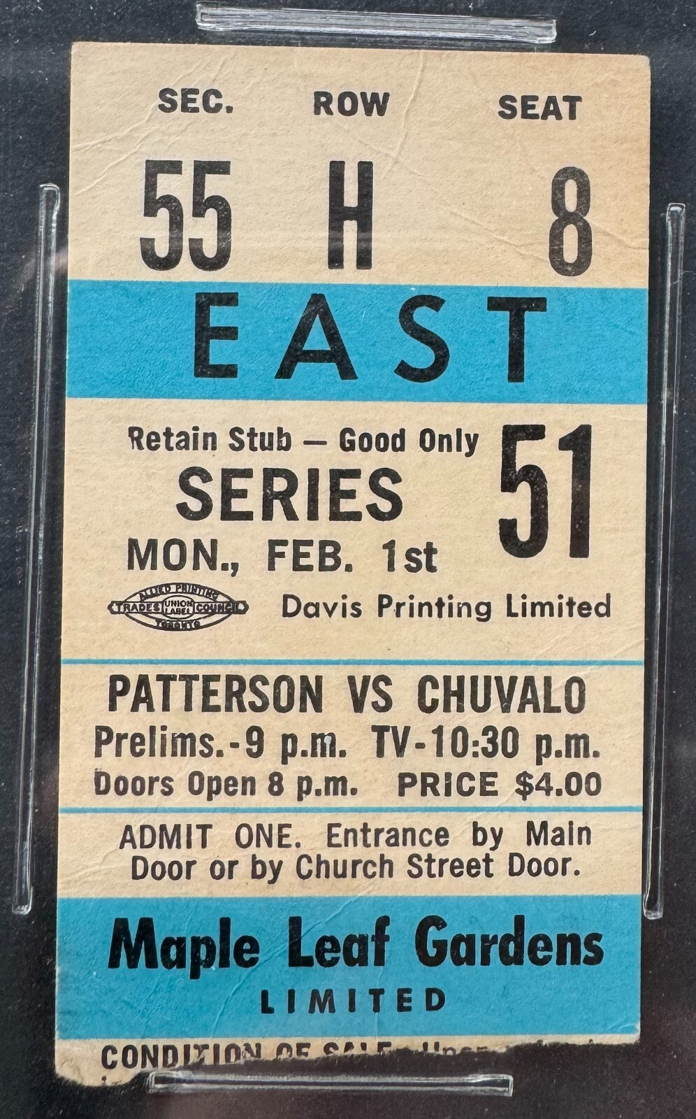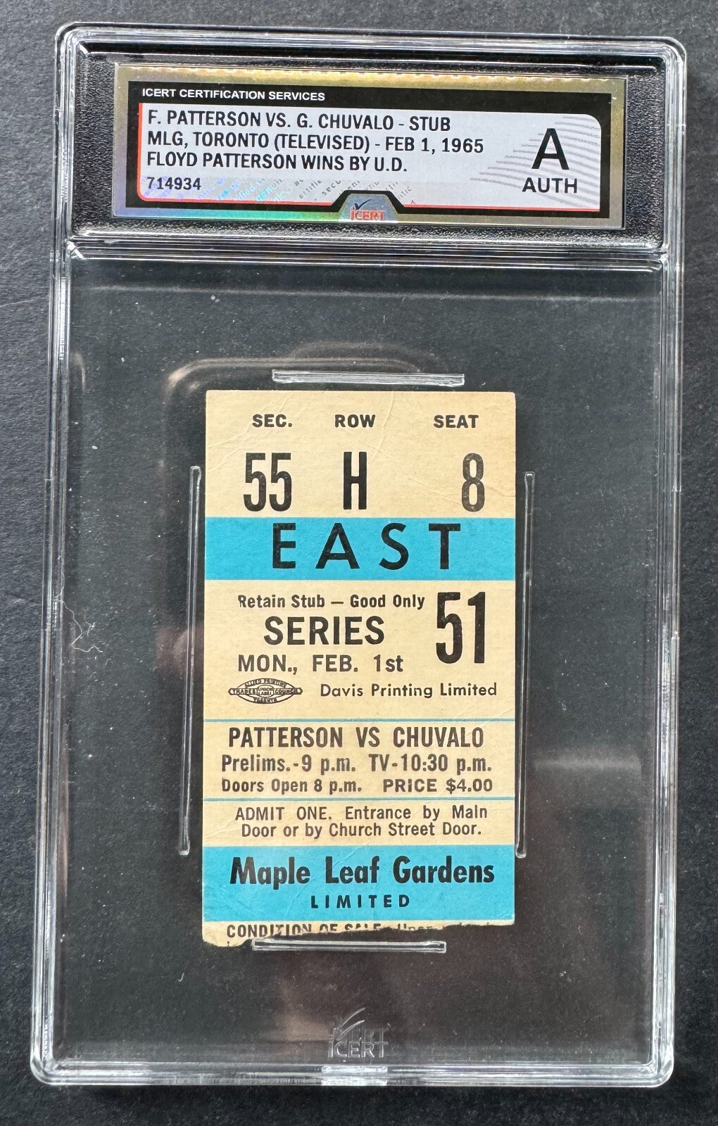 - 1965 Patterson Vs Chuvalo Maple Leaf Gardens Ticket Stub iCert A Auth