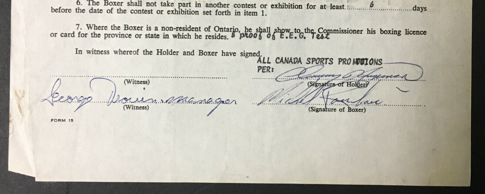 - Vintage 1977 Ontario boxing contract to take part in a professional boxing contest of exhibition