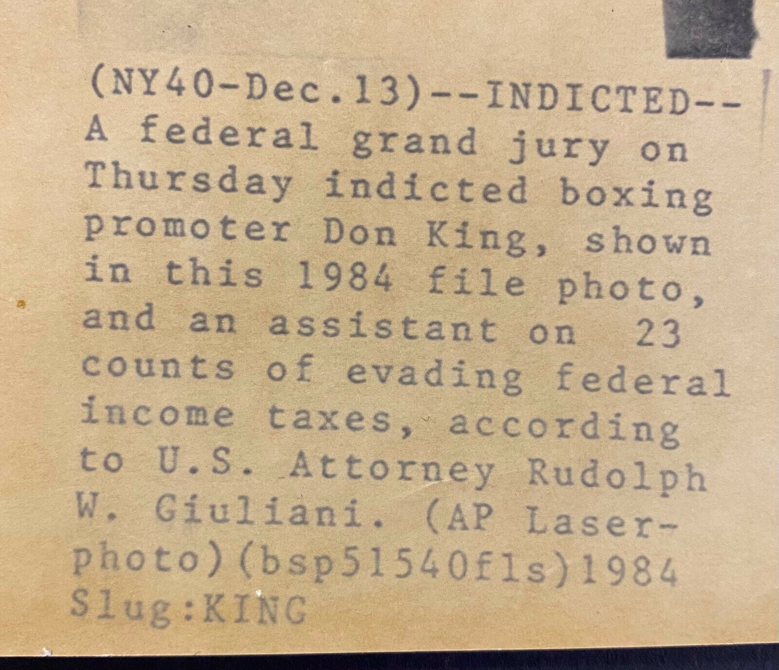 1984 Wire Photo Boxing Promoter Don King Charged With Tax Evasion Date Stamped