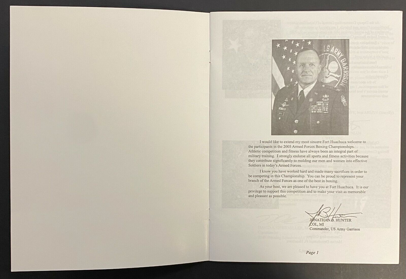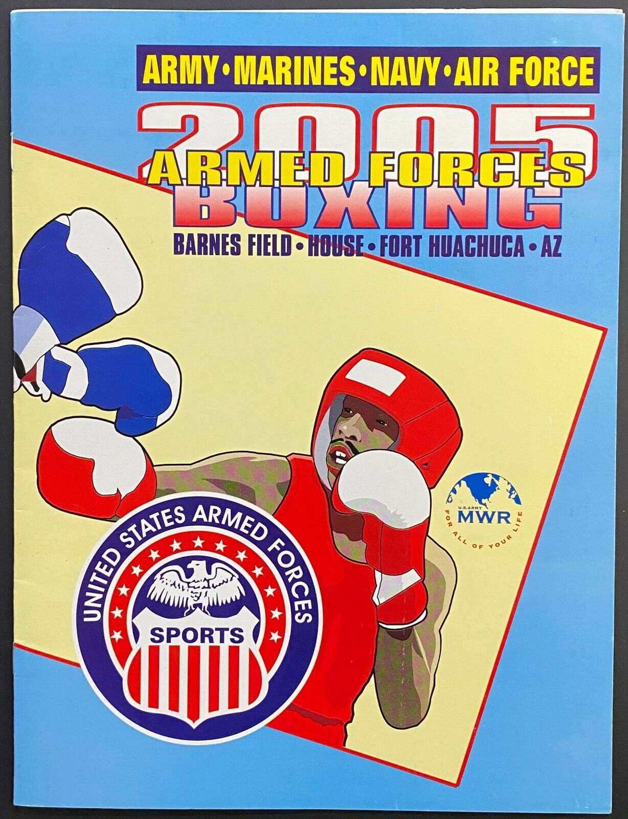 - February 17th-19th 2005 poster and program for the US Armed Forces Boxing Championship at the Barnes Field House in Fort Huachuca, Arizona