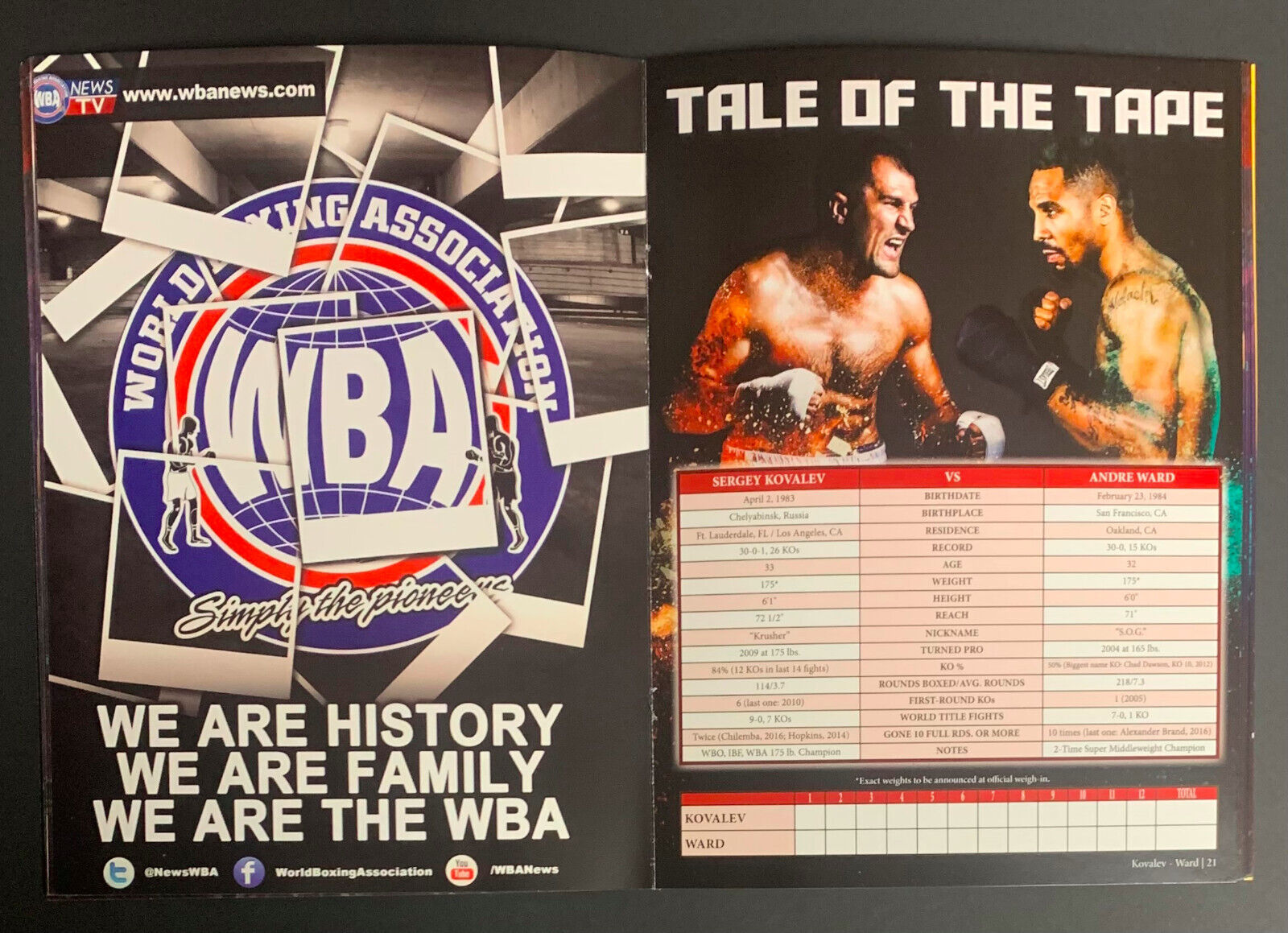 - Original 2016 Kovalev vs Ward title fight program from T-Mobile Arena, Las Vegas