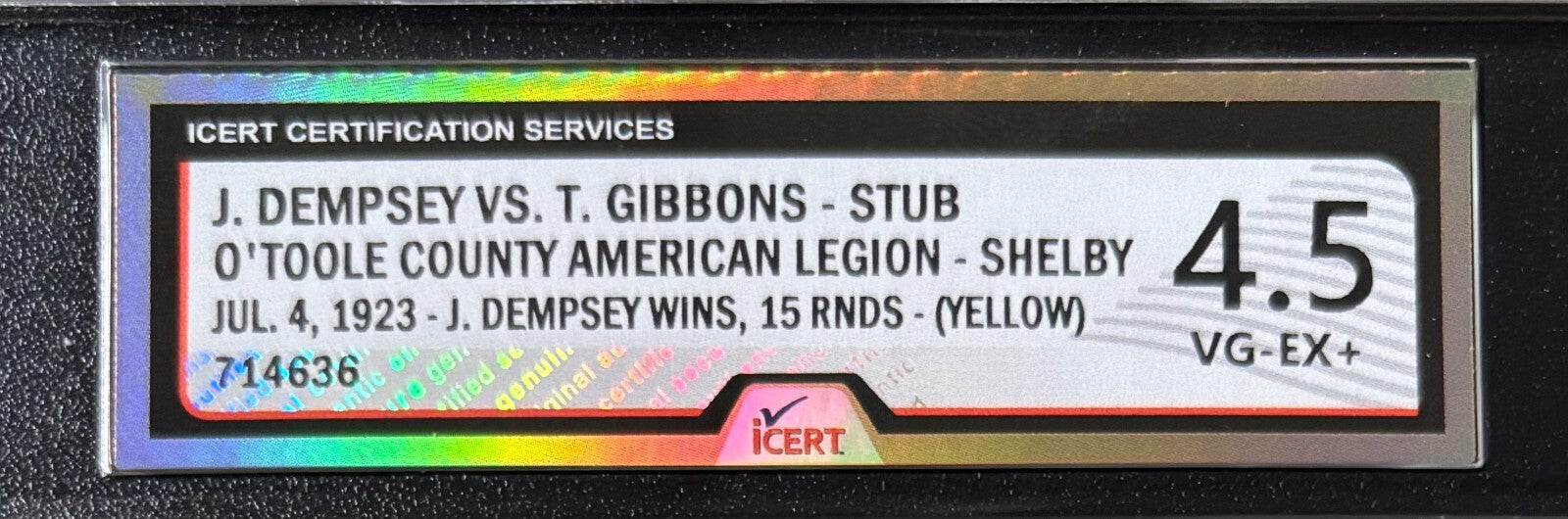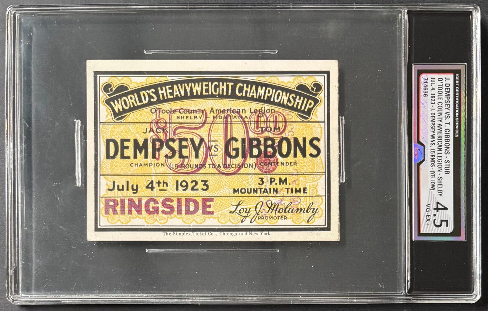- Jack Dempsey vs. Tommy Gibbons Boxing Ticket Stub iCert 4.5 VG-EX+
