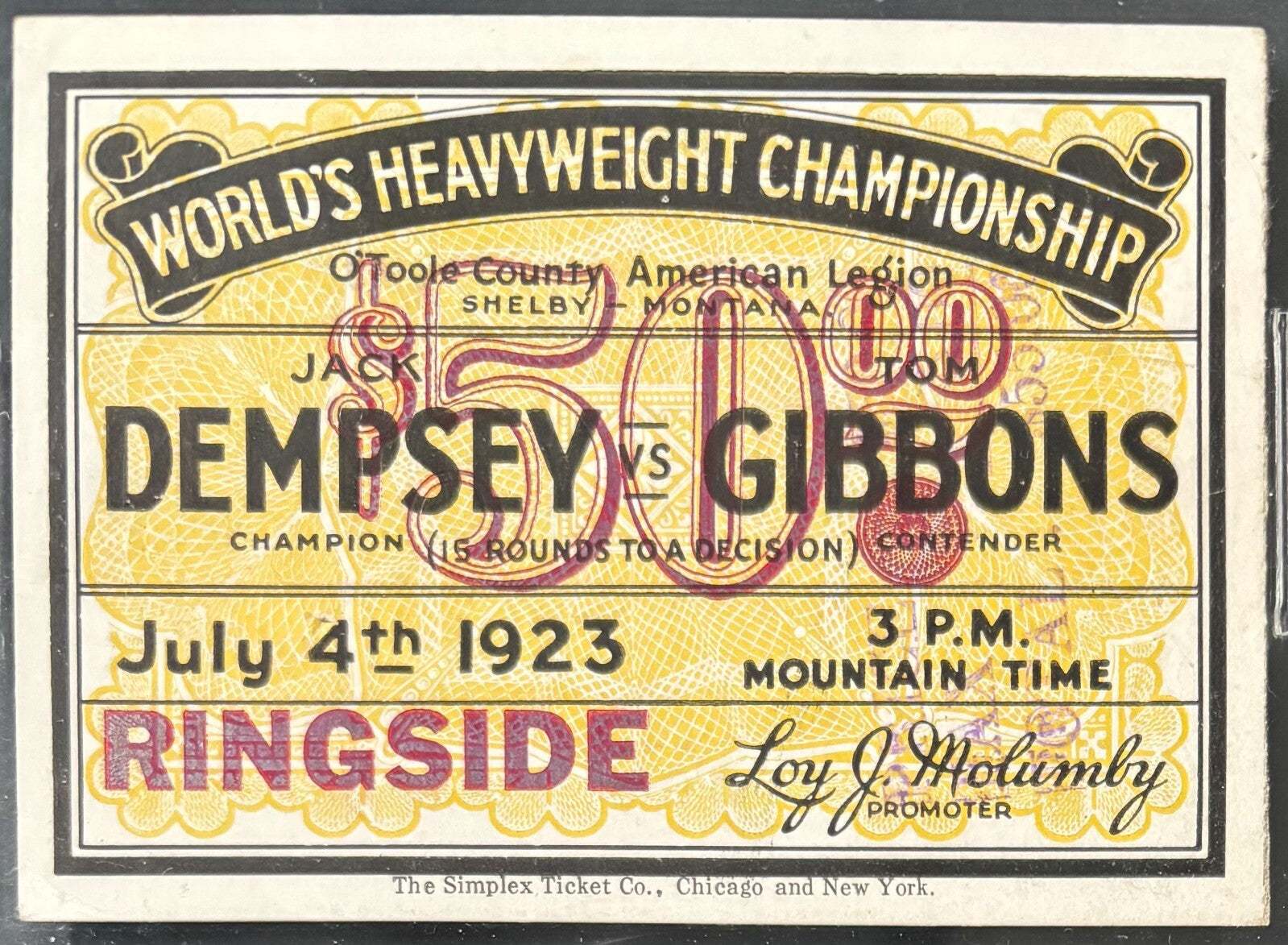 - Ticket was for boxing's world heavyweight title on July 4, 1923