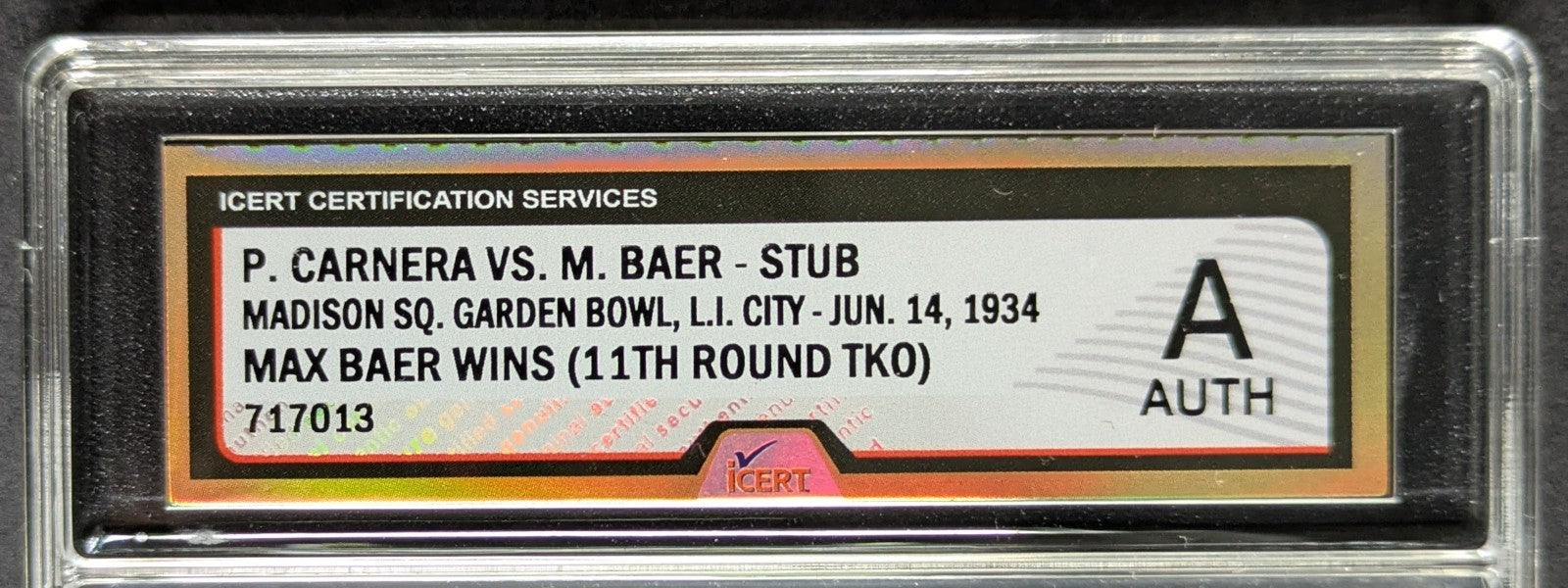 - Max Baer Vs Primo Carnera boxing match ticket stub