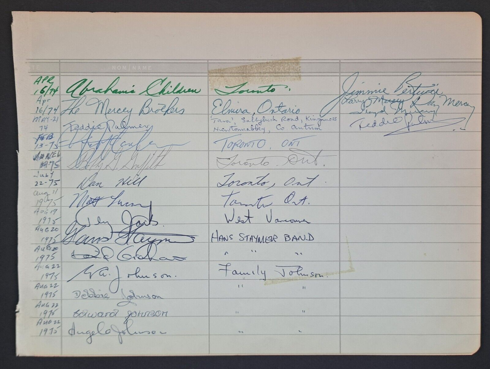 1974/1975 RPM Music Magazine Guest Log Register Signatures Page Vintage