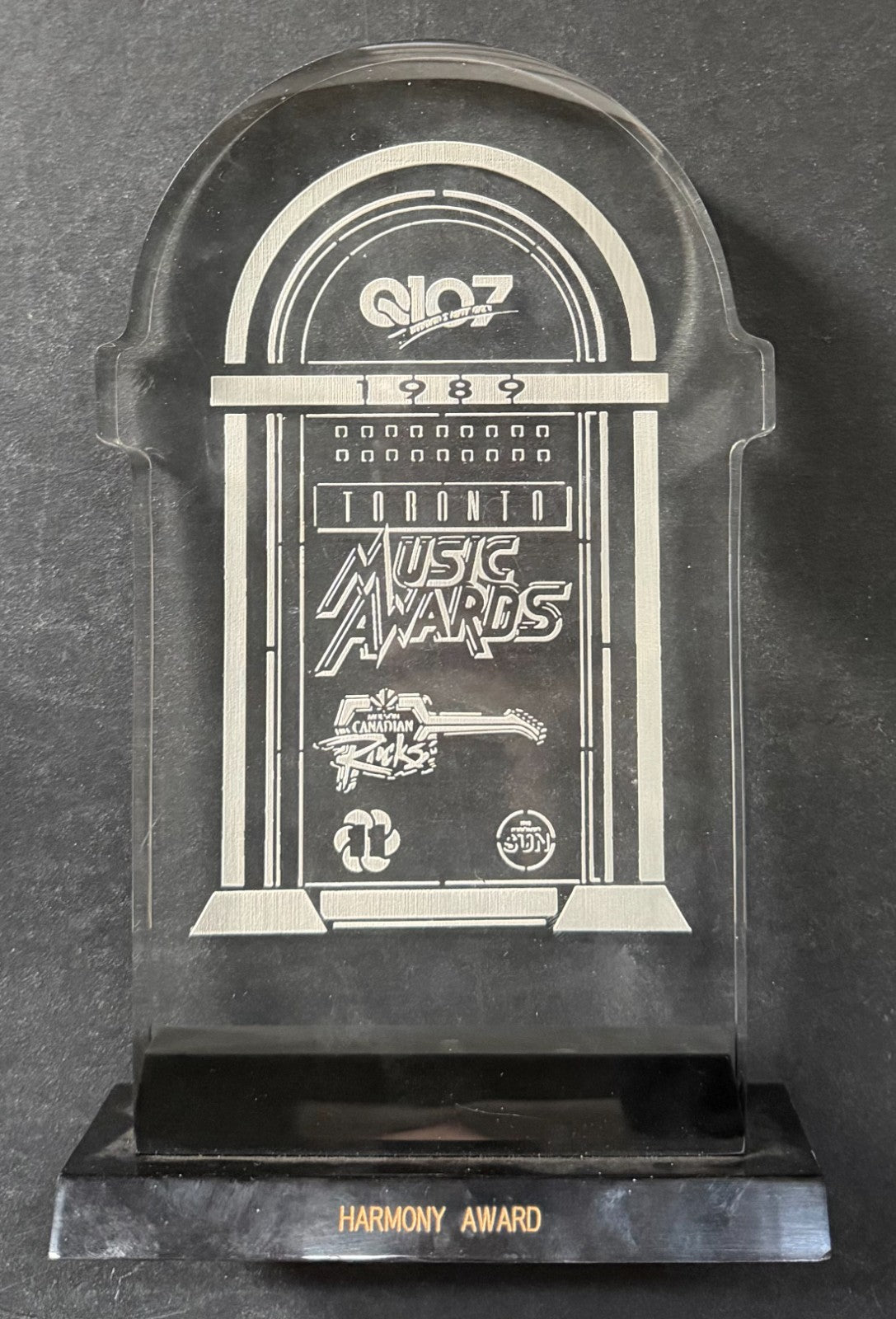 - 1989 Q107 Harmony Award presentation piece/trophy awarded to Gordon Lightfoot