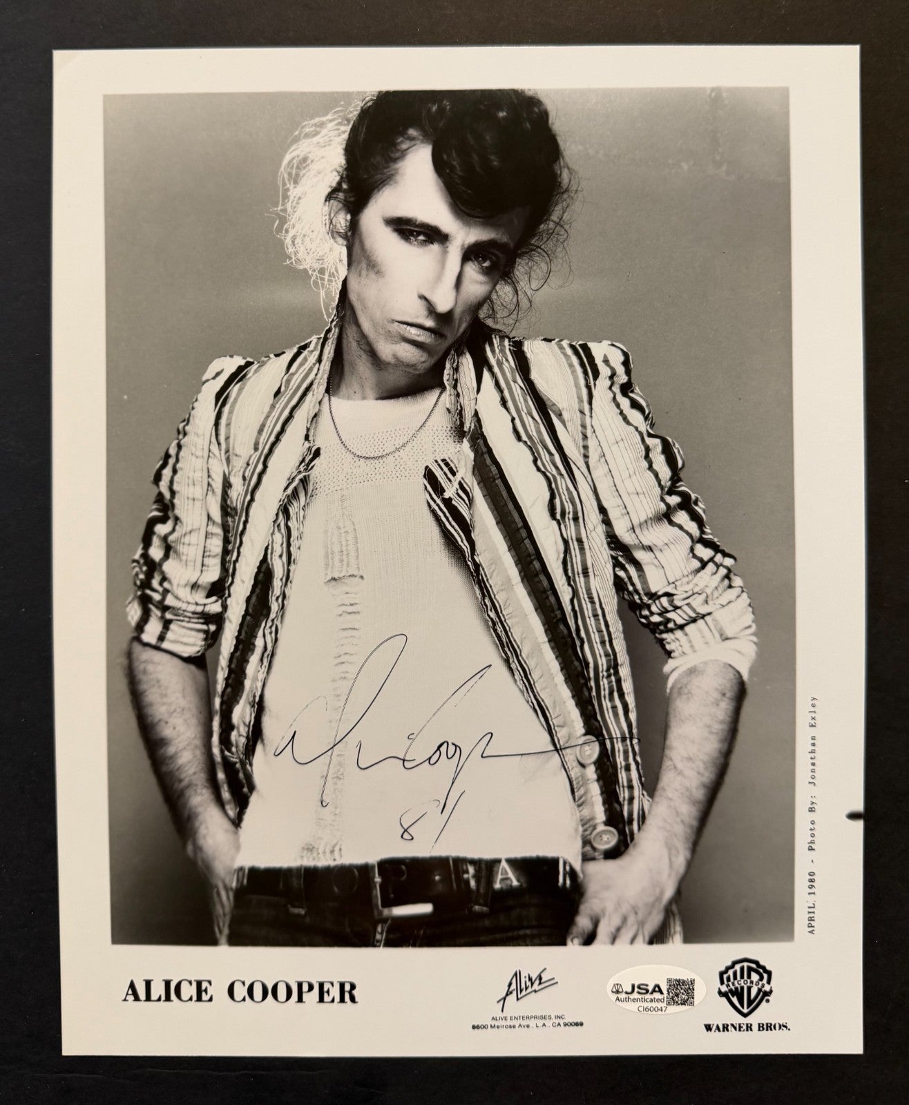 Alice Cooper Signed 1980 Promo Photo JSA COA Warner Bros. Jonathan Exley Music