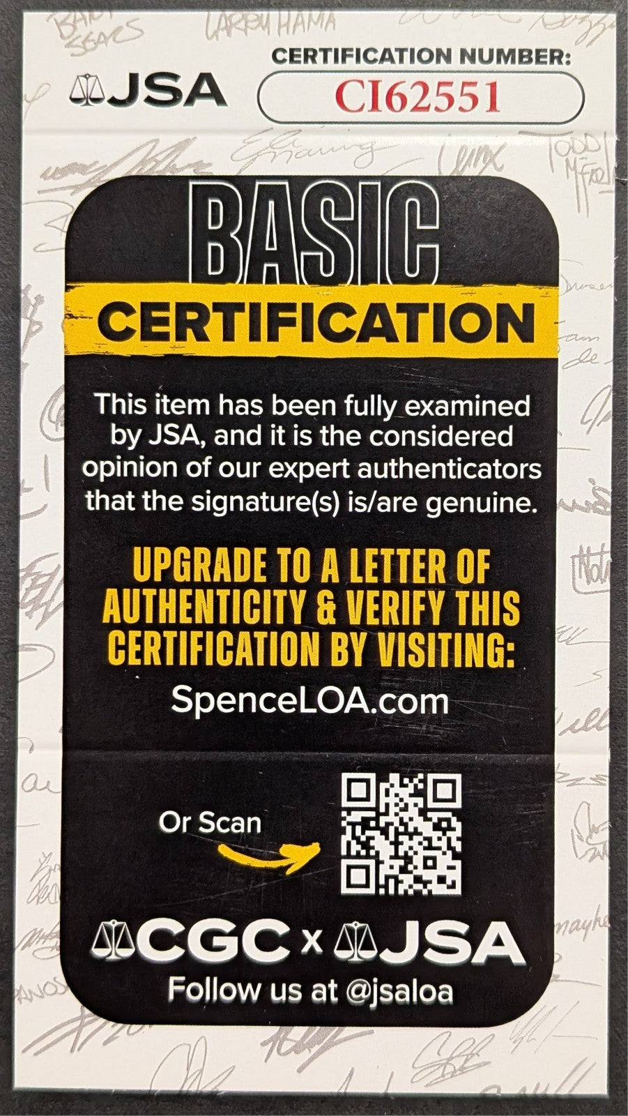 - JSA Certificate of Authenticity included - Certification #CI62551