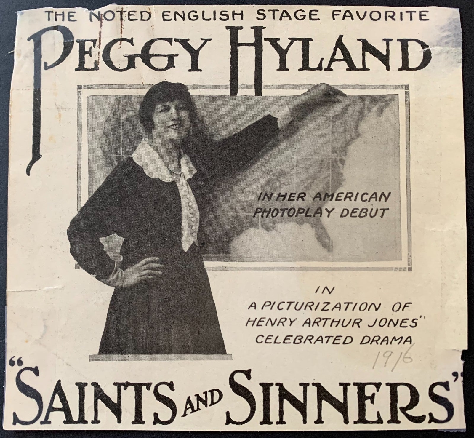 - Also includes an ad promoting her 1916 film "Saints and Sinners"