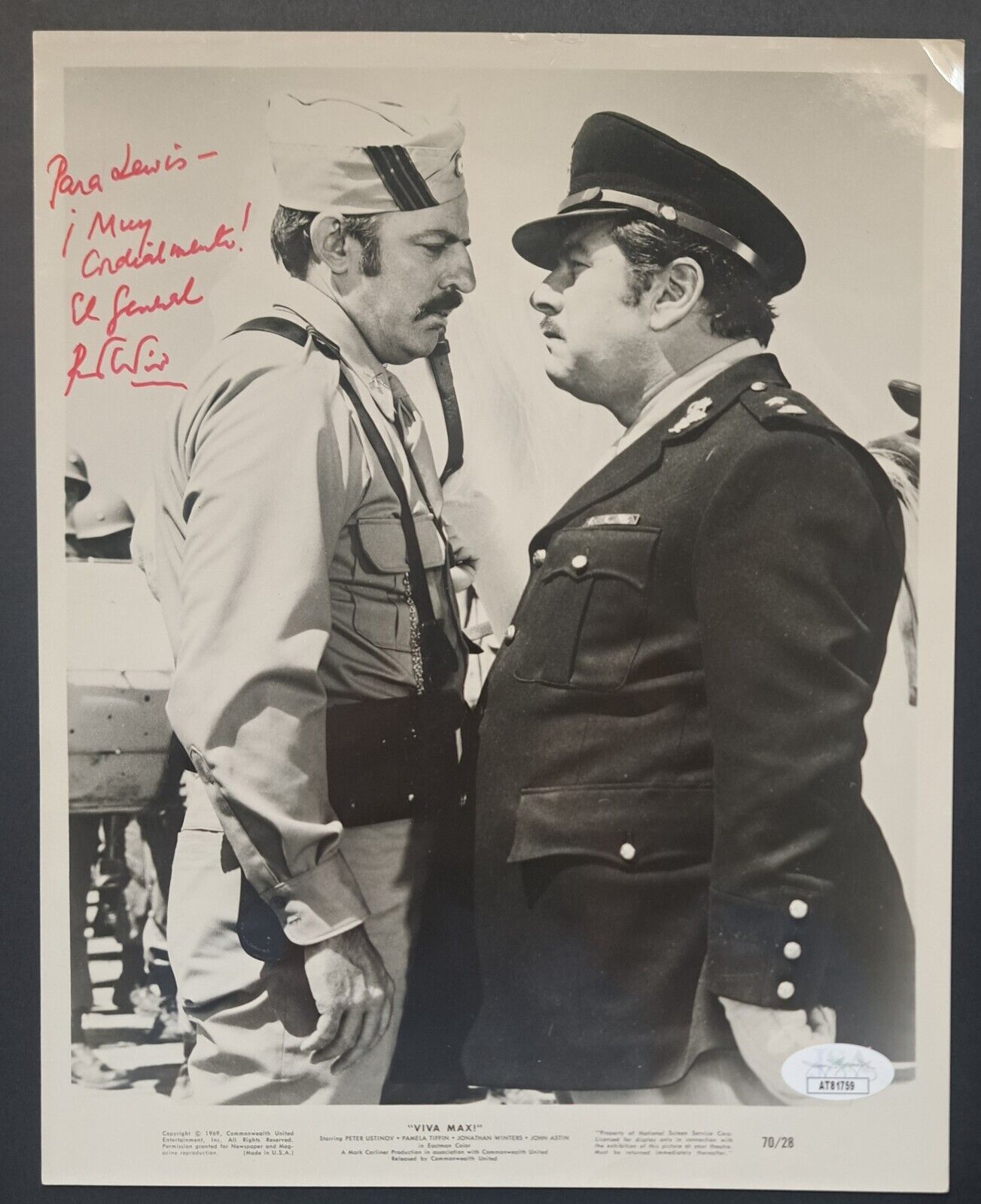 - Peter Ustinov autographed 8" x 10" signed promotional lobby card photograph, authenticated by JSA
