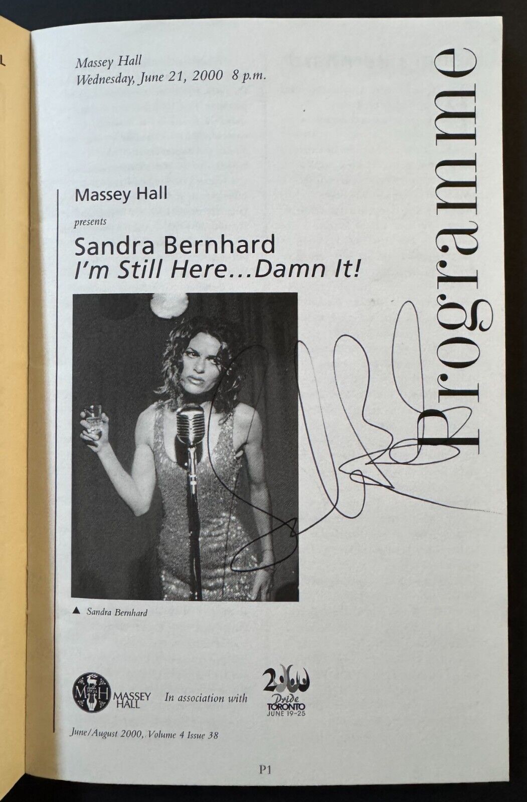 - Sandra Bernhard signed autographed playbill from a June 21, 2000 performance at Toronto's Massey Hall