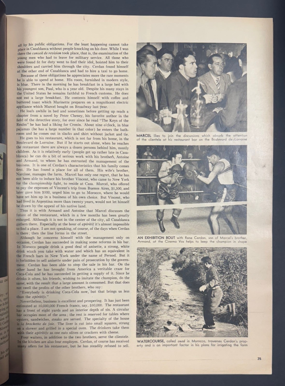 • World's Middleweight Boxing Champion Marcel Cerdan is featured on the cover