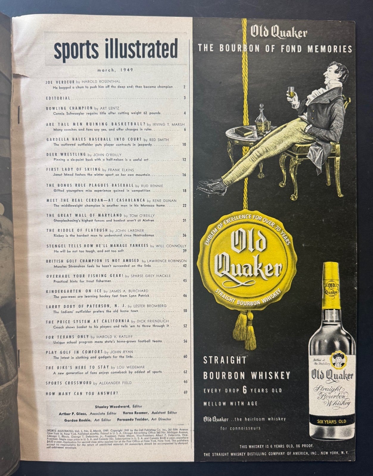 Sports Illustrated Magazine March 1949 Dell Publishing Volume 1 No. 2 Cerdan