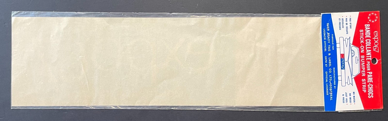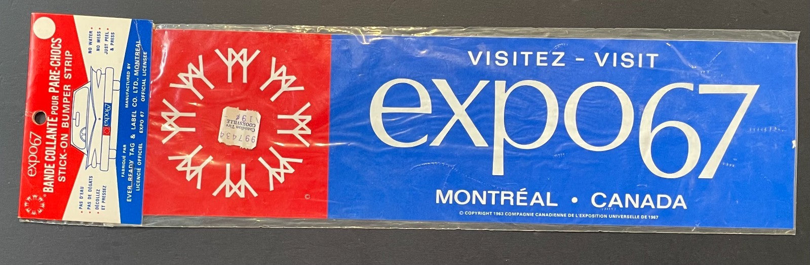 - 1967 Worlds Fair new old stock 13'' bumper stickers in original packaging promoting Montreal's Expo 67