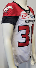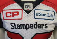 - Glenn Love game used 2016 Calgary Stampeders white CFL jersey. Made by Adidas with a size 42 label along with another indicating that 3" have been taken off the body length. Corporate sponsorship patches for CP and Sun Life on right and left breast, respectively. Notable gamewear throughout, including some small hit marks and paint transfer. Love played for the UCLA Bruins in the NCAA from 2008-11 before signing with the BC Lions in 2012. Signed to the Stampeders in 2013, he also played briefly with the Saskatchewan Roughriders before finishing his career with the Montreal Alouettes in 2018- 19. He won the 102nd Grey Cup with Calgary in the 2014 CFL season.