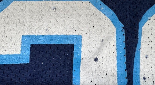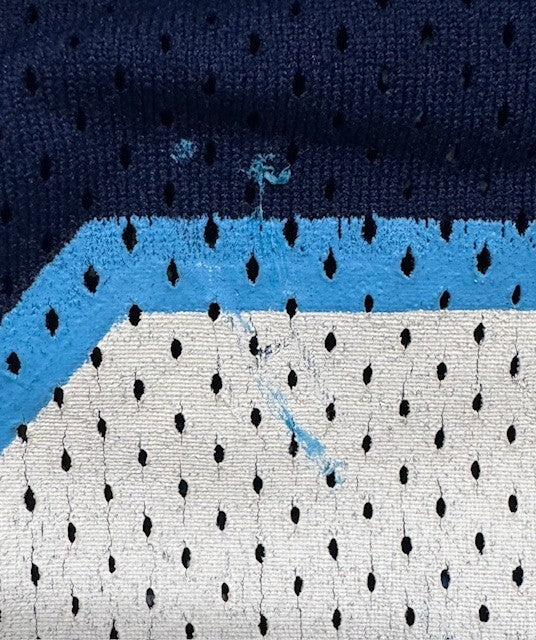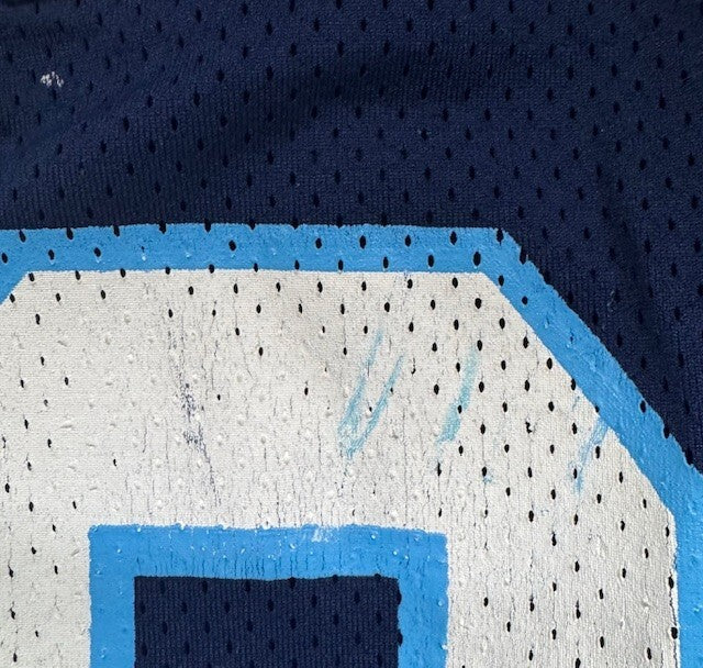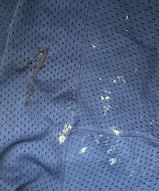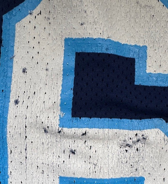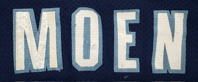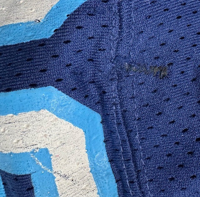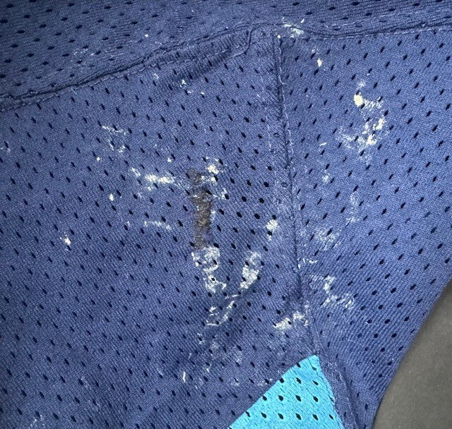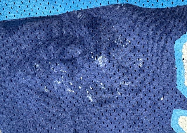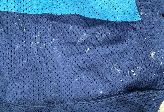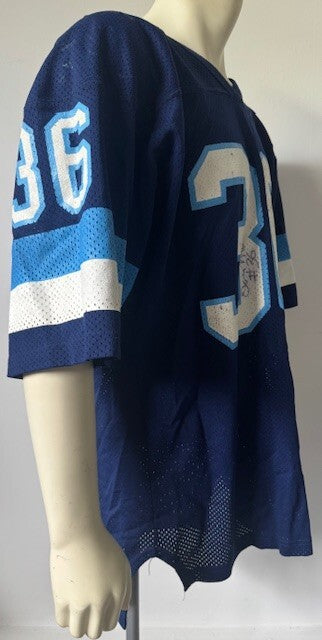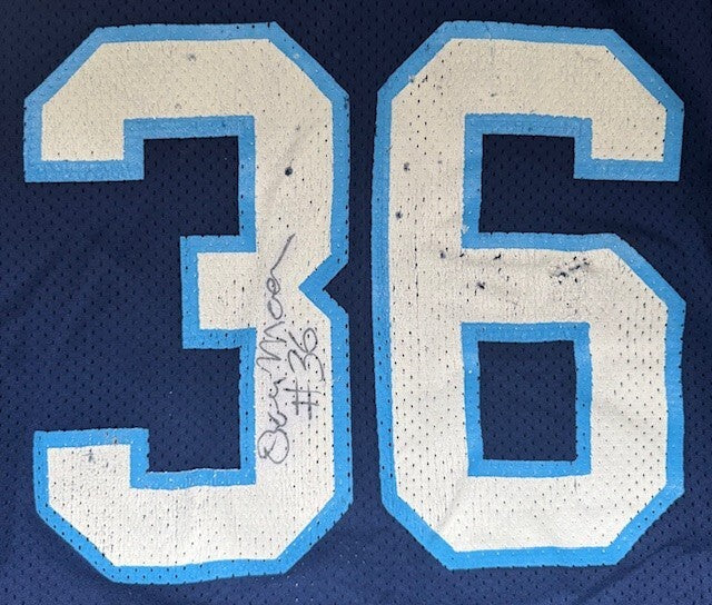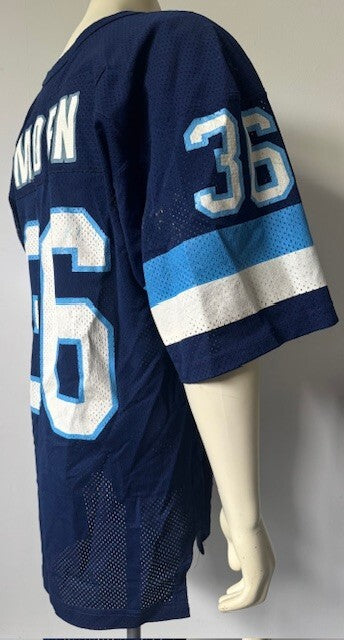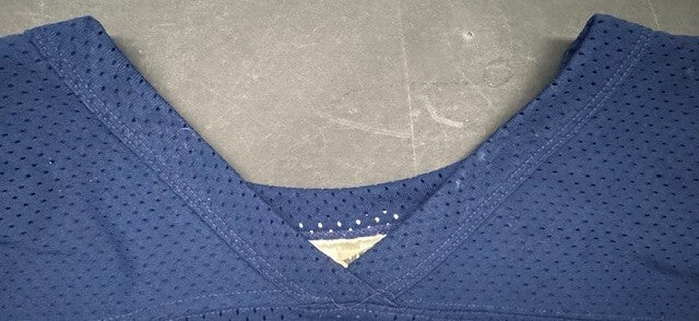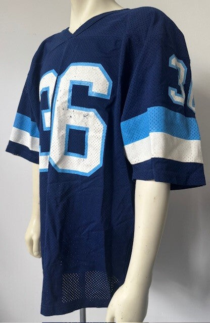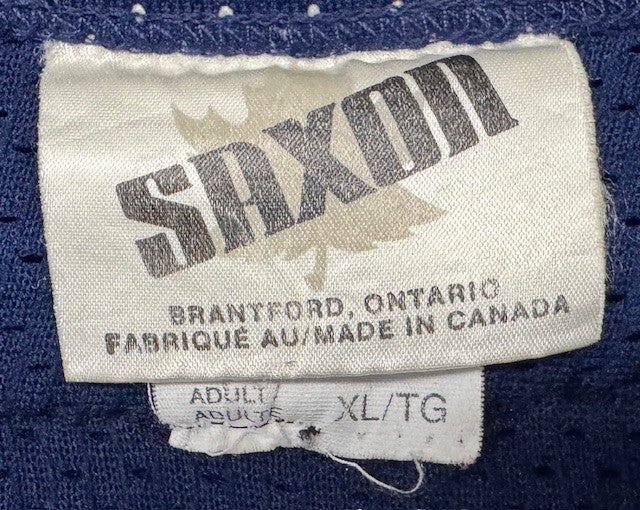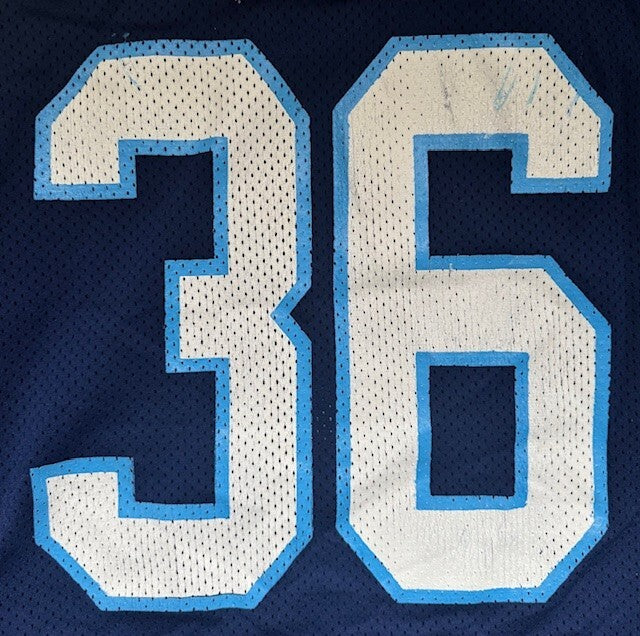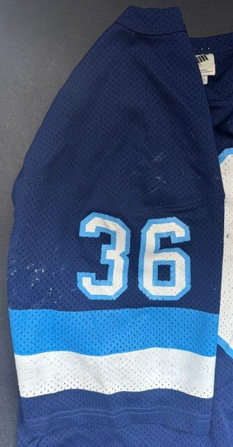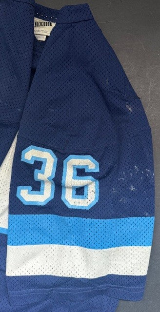 - Game used blue jersey #36 made by Saxon (2 tags in neck) size XL. Screened name on plate sewn on jersey. Screened numbers.