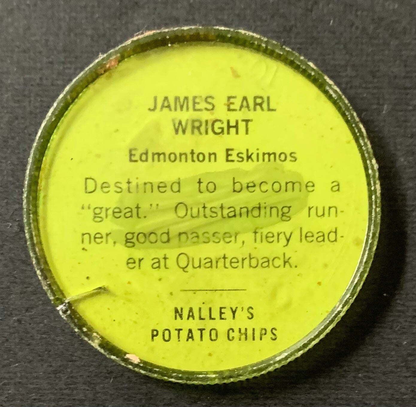 - 1963 Nalleys CFL Coin #111 James Earl Wright Edmonton Eskimos Nalley's Football