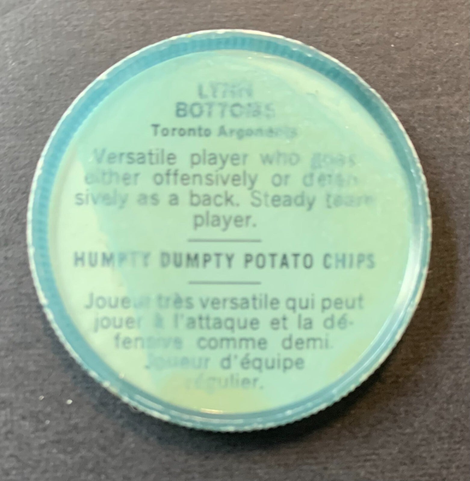 • 1963 Nalleys CFL Coin #12 Lynn Bottoms Toronto Argonauts Humpty Dumpty Football