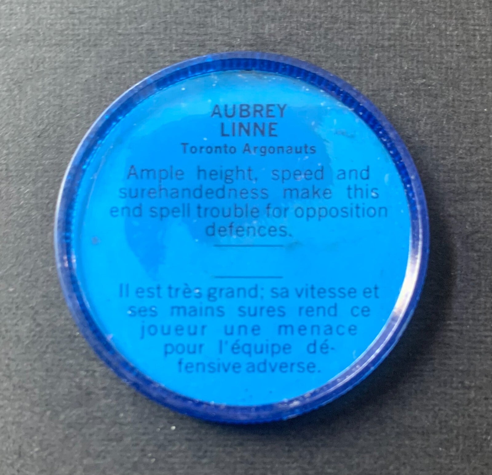 • 1963 Nalleys CFL Coin #18 Aubrey Linne Toronto Argonauts Anonymous Back (Bilingual) Football