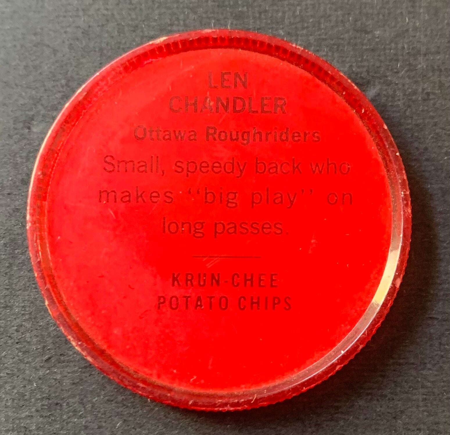 1963 Nalleys CFL Coin #38 Len Chandler Ottawa Roughriders Krun Chee Football