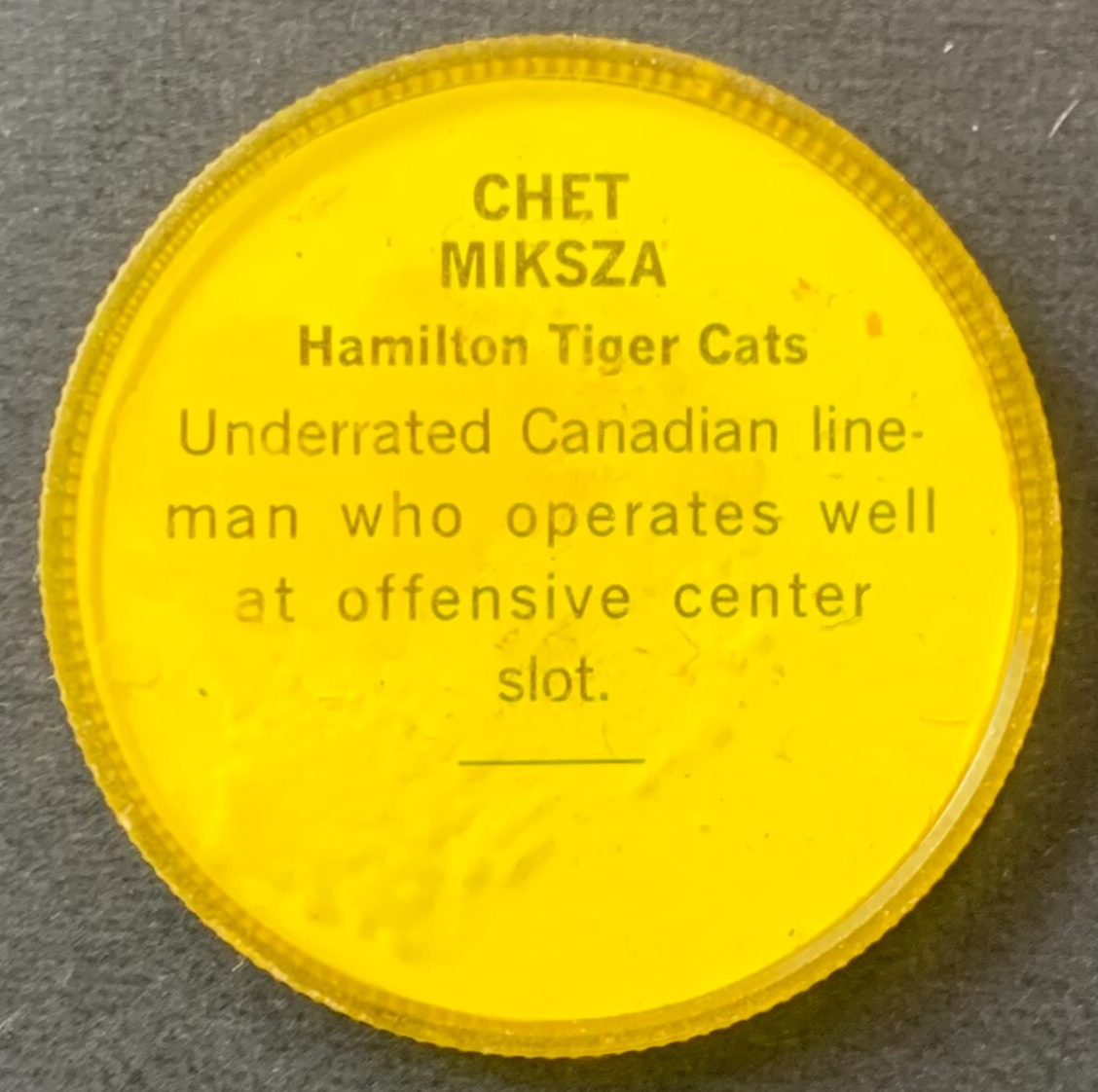 - 1963 Nalleys CFL Coin #55 Chet Miksza Hamilton Tiger Cats Anonymous Back (English) Football