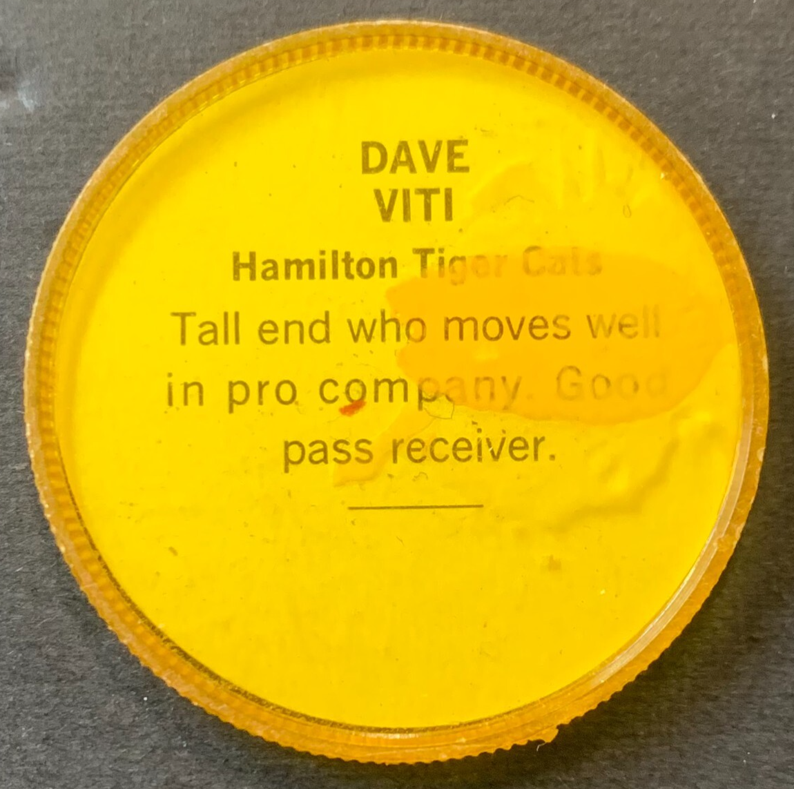 1963 Nalleys CFL Coin #59 Dave Viti Hamilton Tiger Cats English Back Football