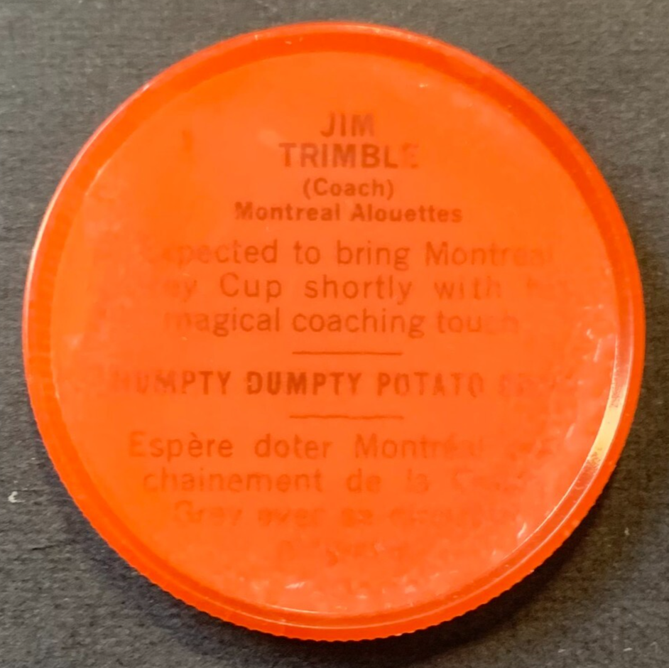 - 1963 Nalleys CFL Coin #71 Jim Trimble Montreal Alouettes Humpty Dumpty Football