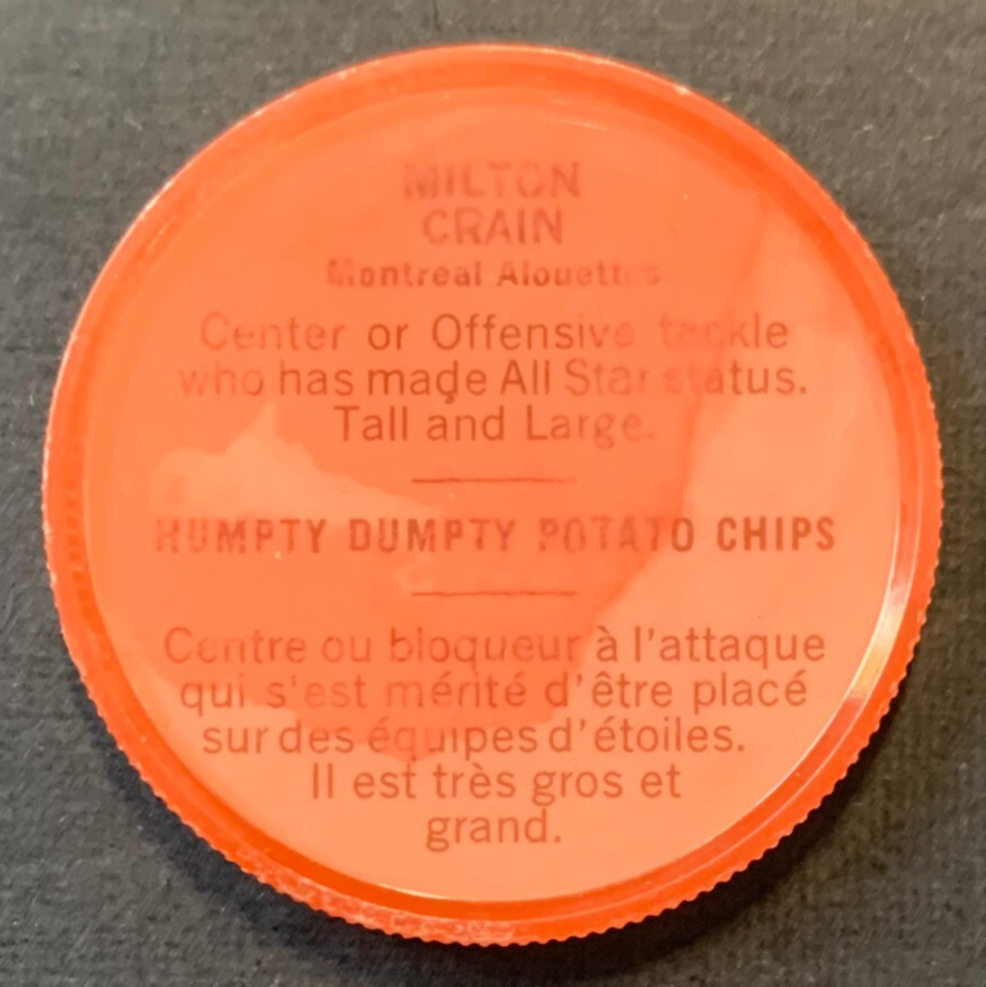 - 1963 Nalleys CFL Coin #74 Milton Crain Montreal Alouettes Humpty Dumpty Football