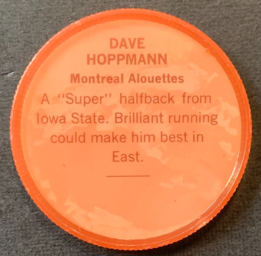 - 1963 Nalleys CFL Coin #77 Dave Hoppmann Montreal Alouettes Anonymous Back (English) Football