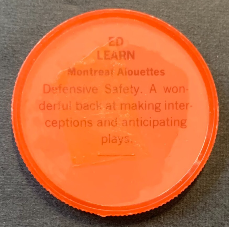 - 1963 Nalleys CFL Coin #79 Ed Learn Montreal Alouettes Anonymous Back (English) Football