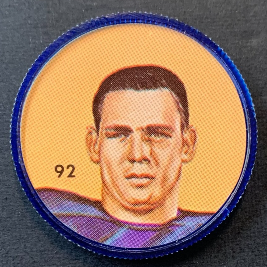 • In 1963, the Canadian Football League contracted to have plastic player coins inserted in brand name potato chip bags including those put out by Nalley's, Hunter's, Krun-Chee, and Humpty Dumpty (printed in French and English). Other variations include (No Company name) Anonymous Back (English Only) and Anonymous Back (Bilingual). In total, there were eight teams represented with 20 coins per team.
