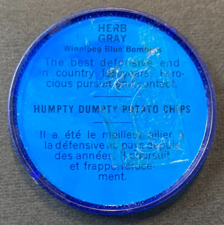 1963 Nalleys CFL Coin #92 Herb Gray Winnipeg Blue Bombers Humpty Dumpty Football