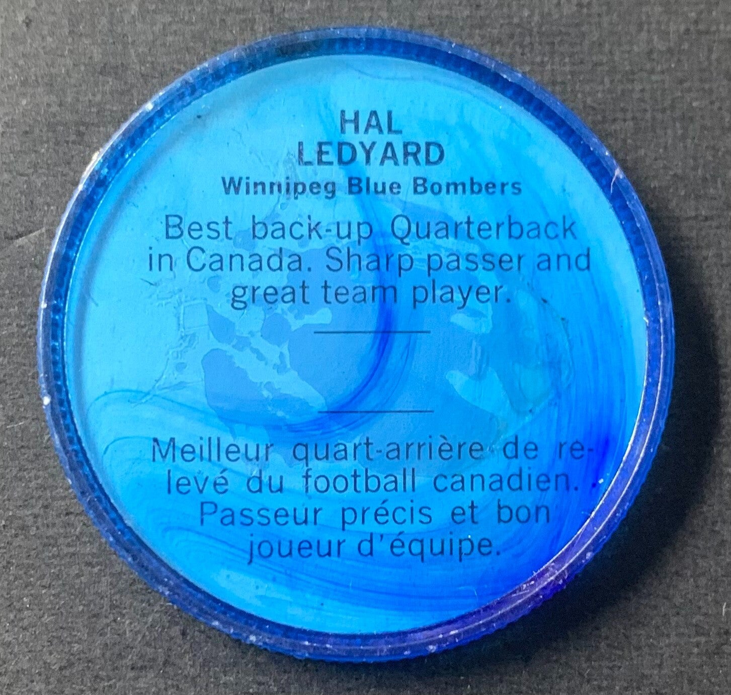 1963 Nalleys CFL Coin #98 Hal Ledyard Blue Bombers Bilingual Back Football