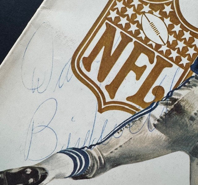 • The front cover is signed by 2 Oakland Raiders star defensive linemen who attended the game: Ben Davidson and Dan Birdwell