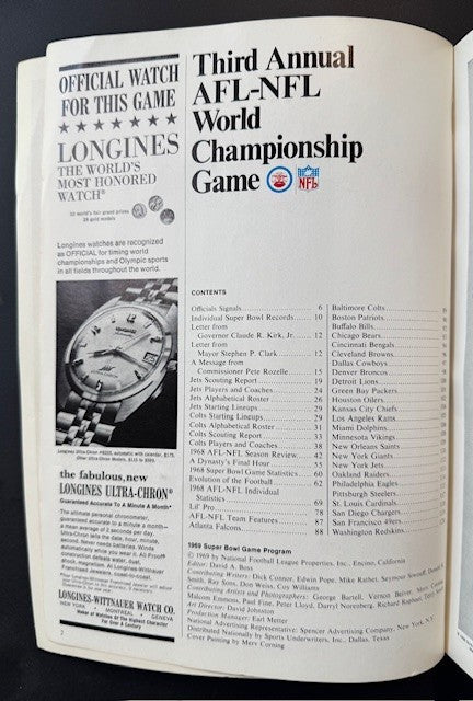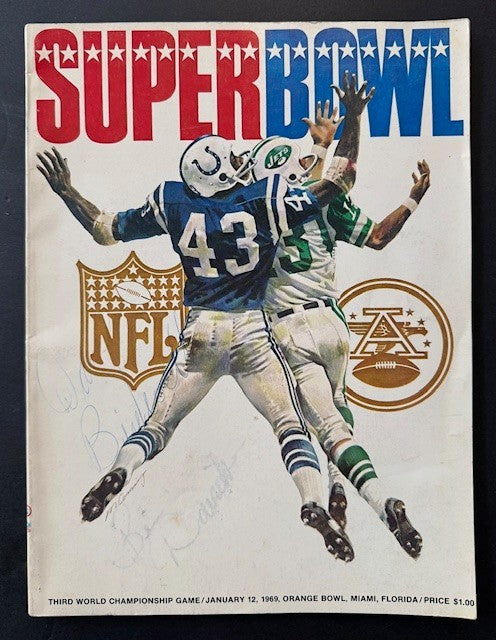 1969 NFL Superbowl III Program Signed x2 Ben Davidson + Dan Birdwell Jets Colts