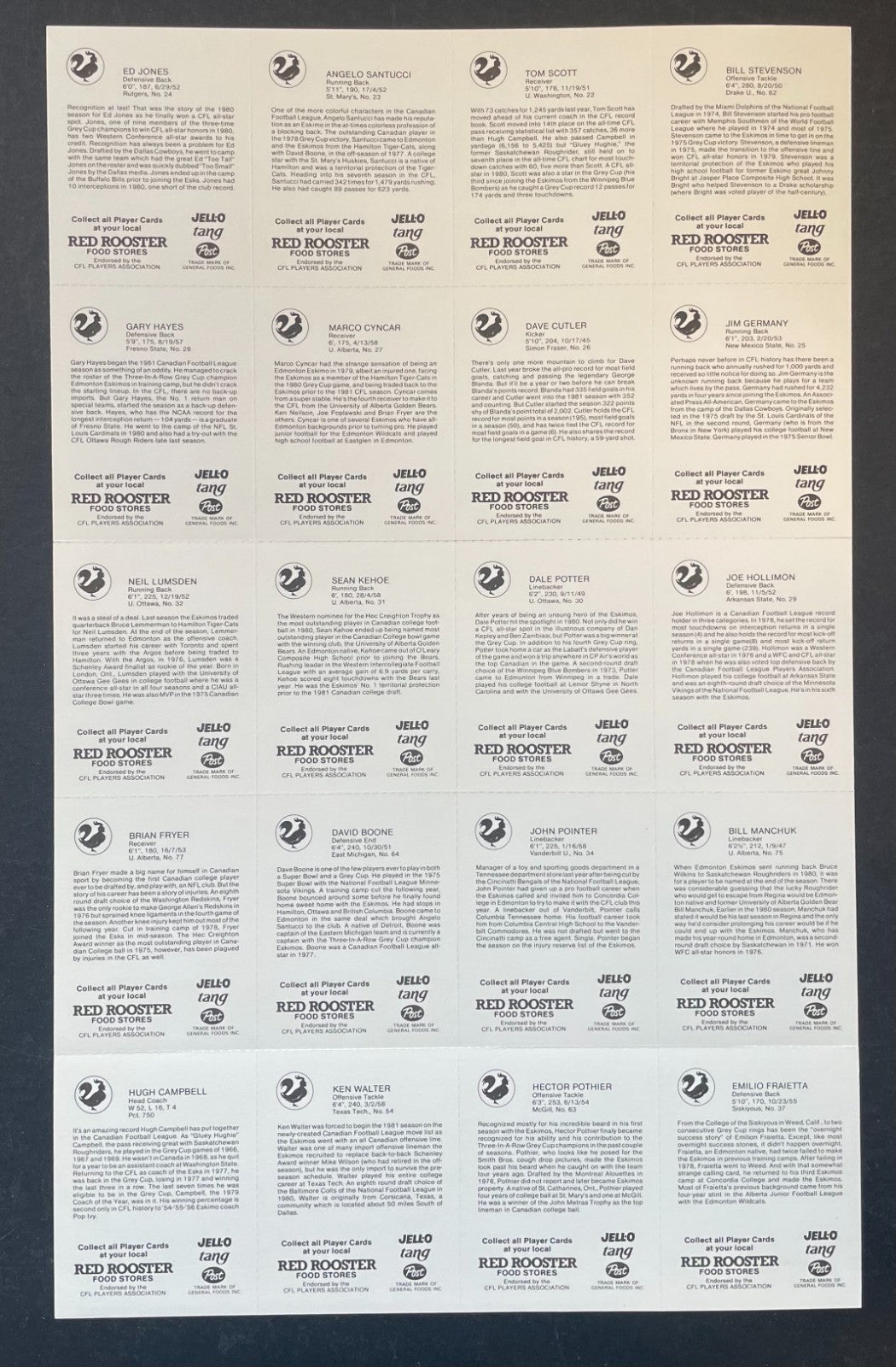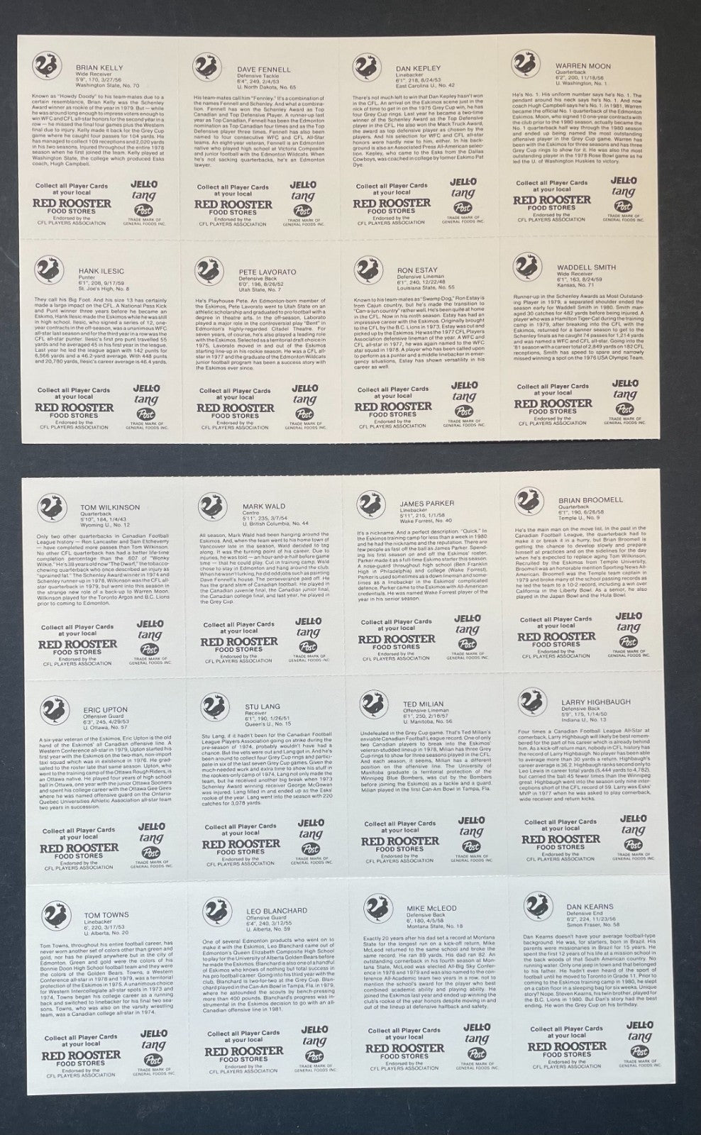 - 1981 Edmonton Eskimos CFL Red Rooster 40 card set