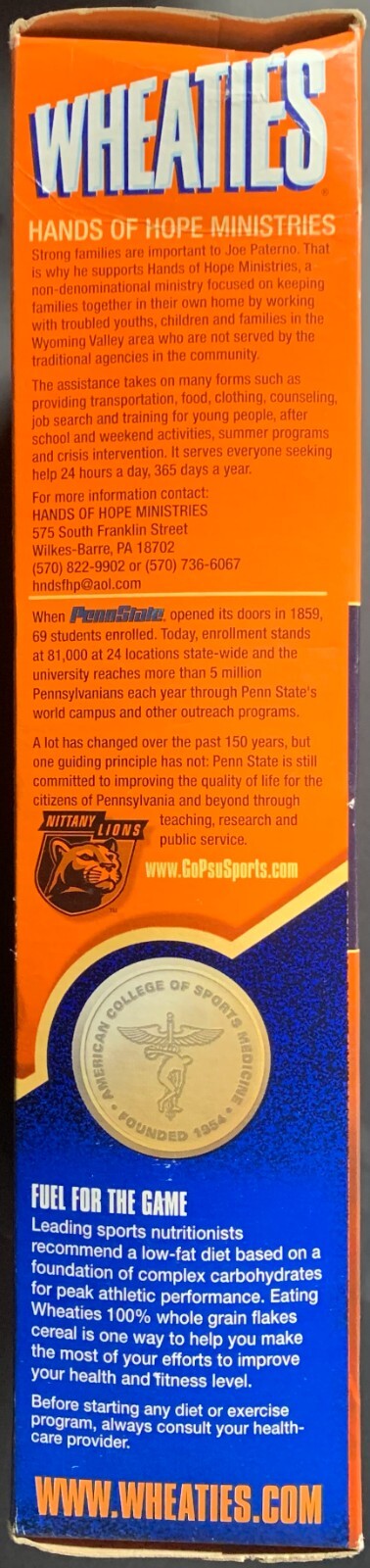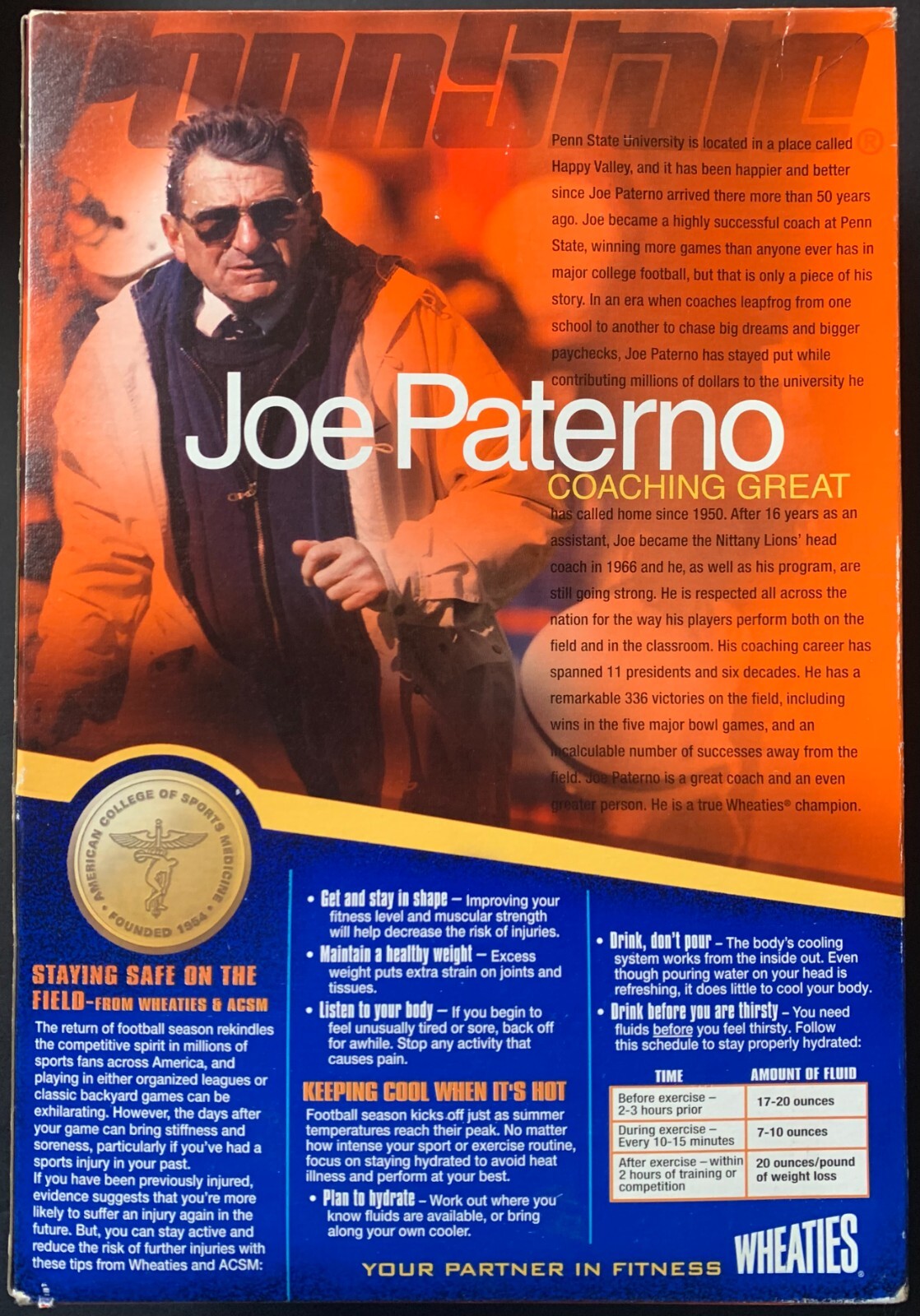 - 2003 Penn State Coach Joe Paterno Signed Autographed Wheaties Box JSA Football