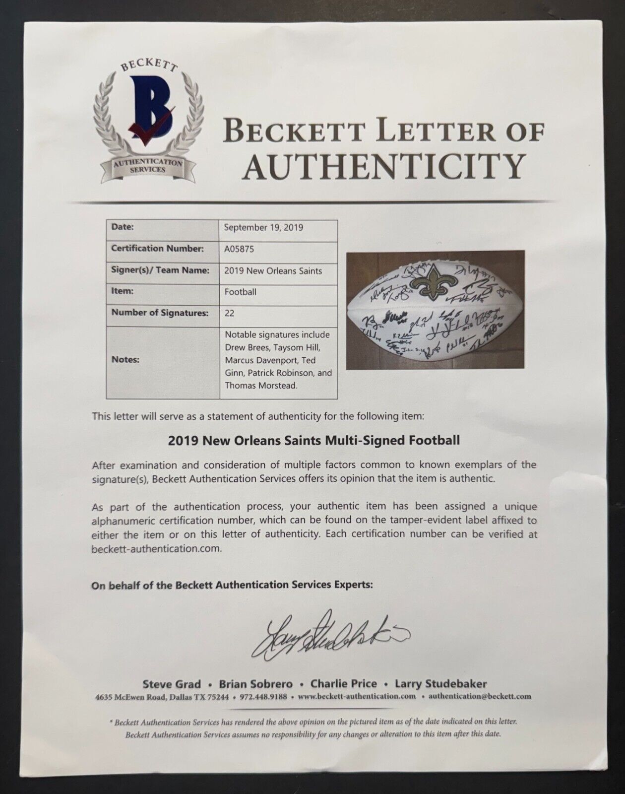 - 2019 New Orleans Saints multi-signed x22 autographed NFL Football