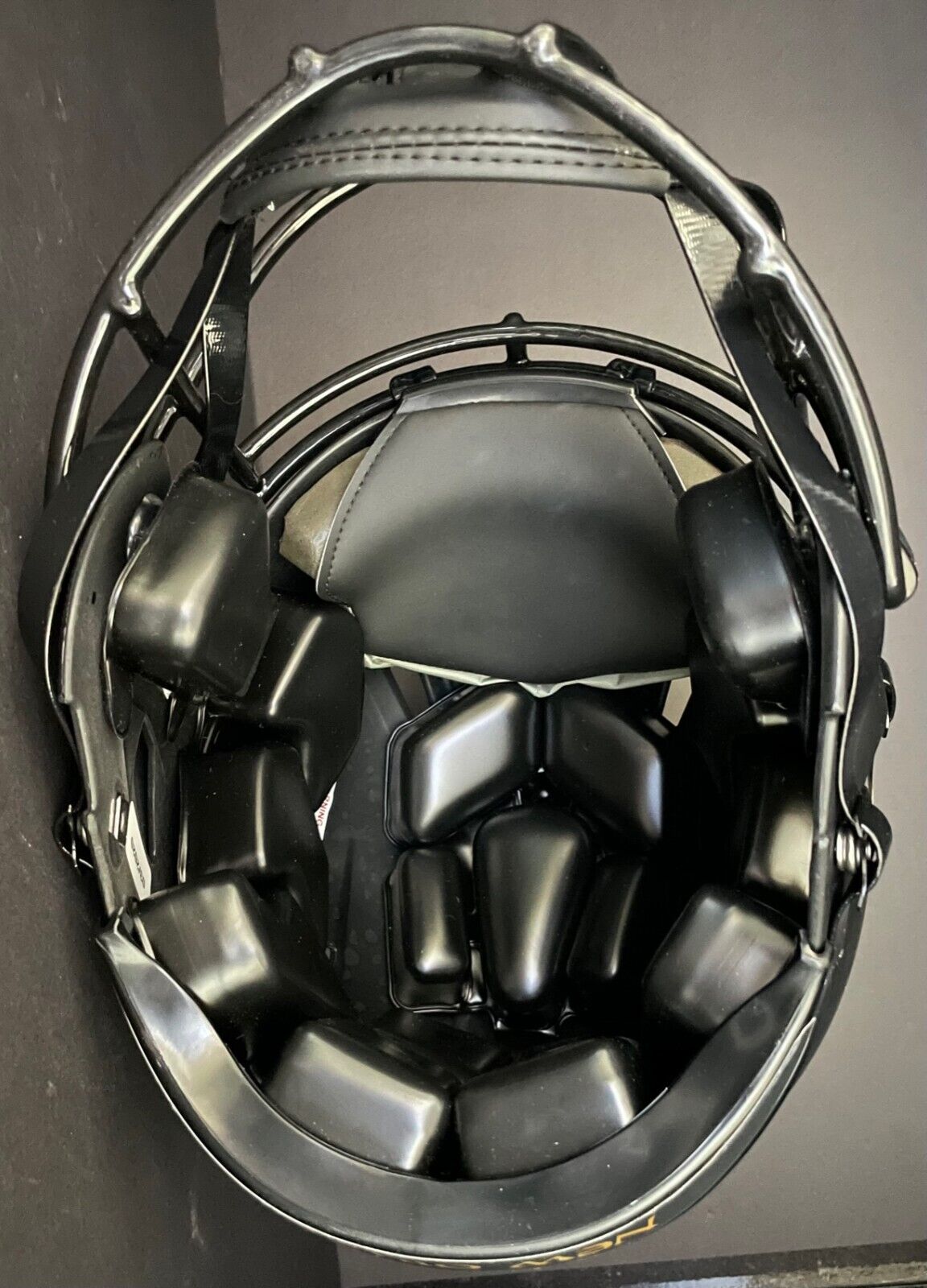 - Great condition; autograph shows some light smudging but still presents very well. A few minor scratches are visible on the helmet itself, most notably near the left logo.