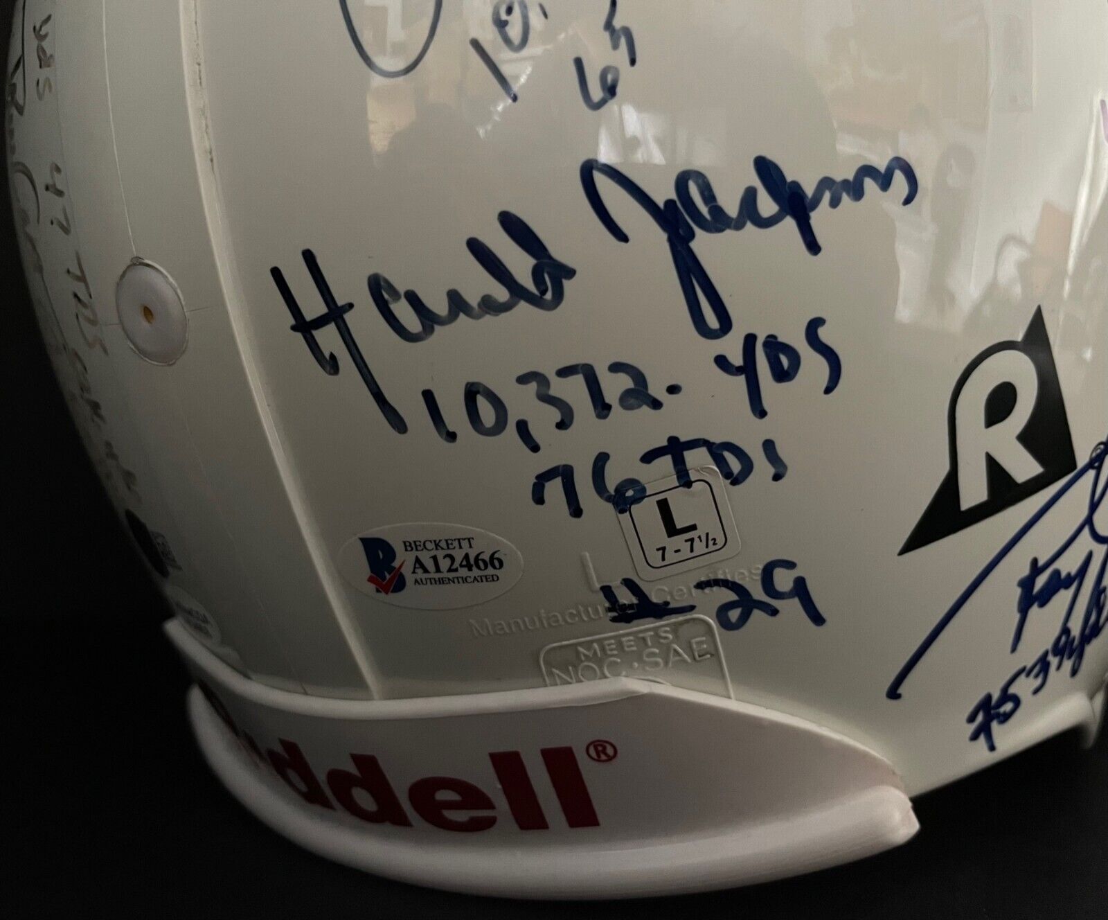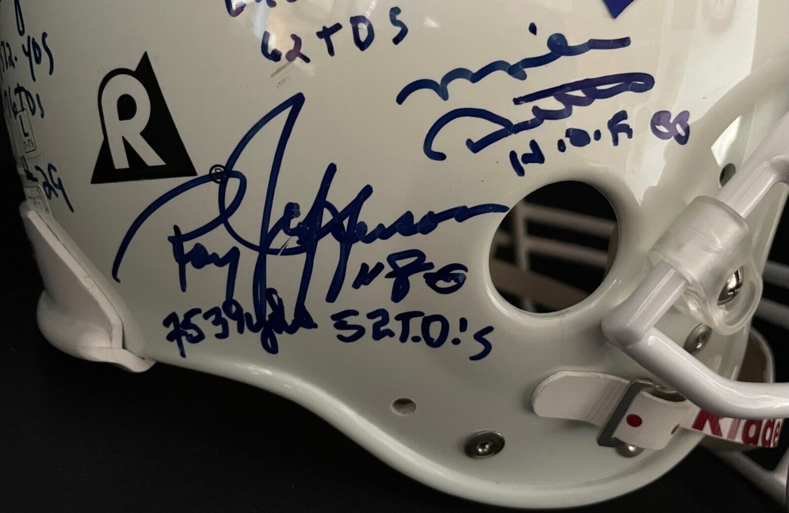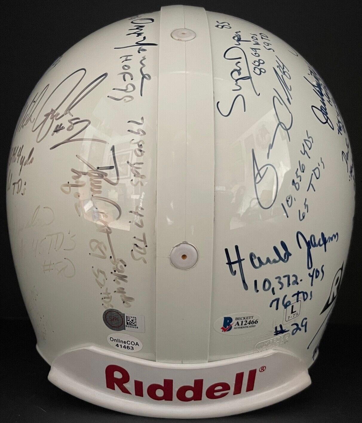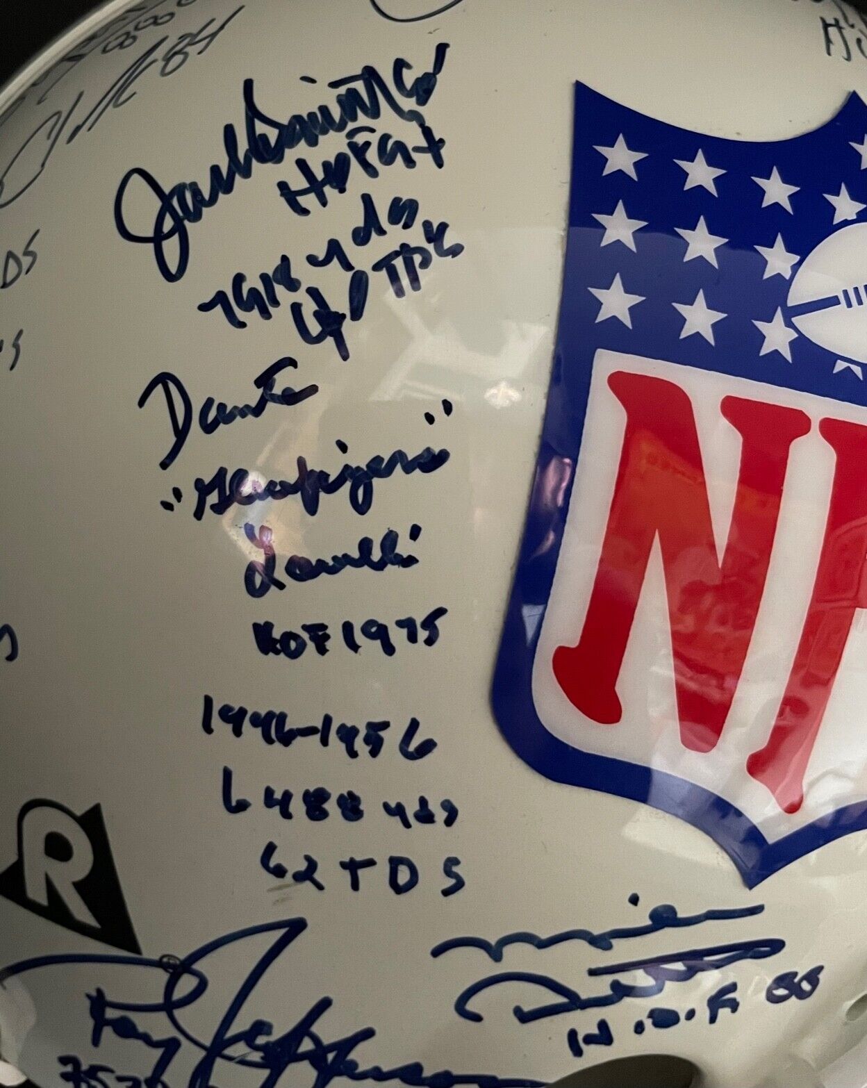 • Full-size NFL logo Riddell pro helmet signed by 22 hall of famers and football greats