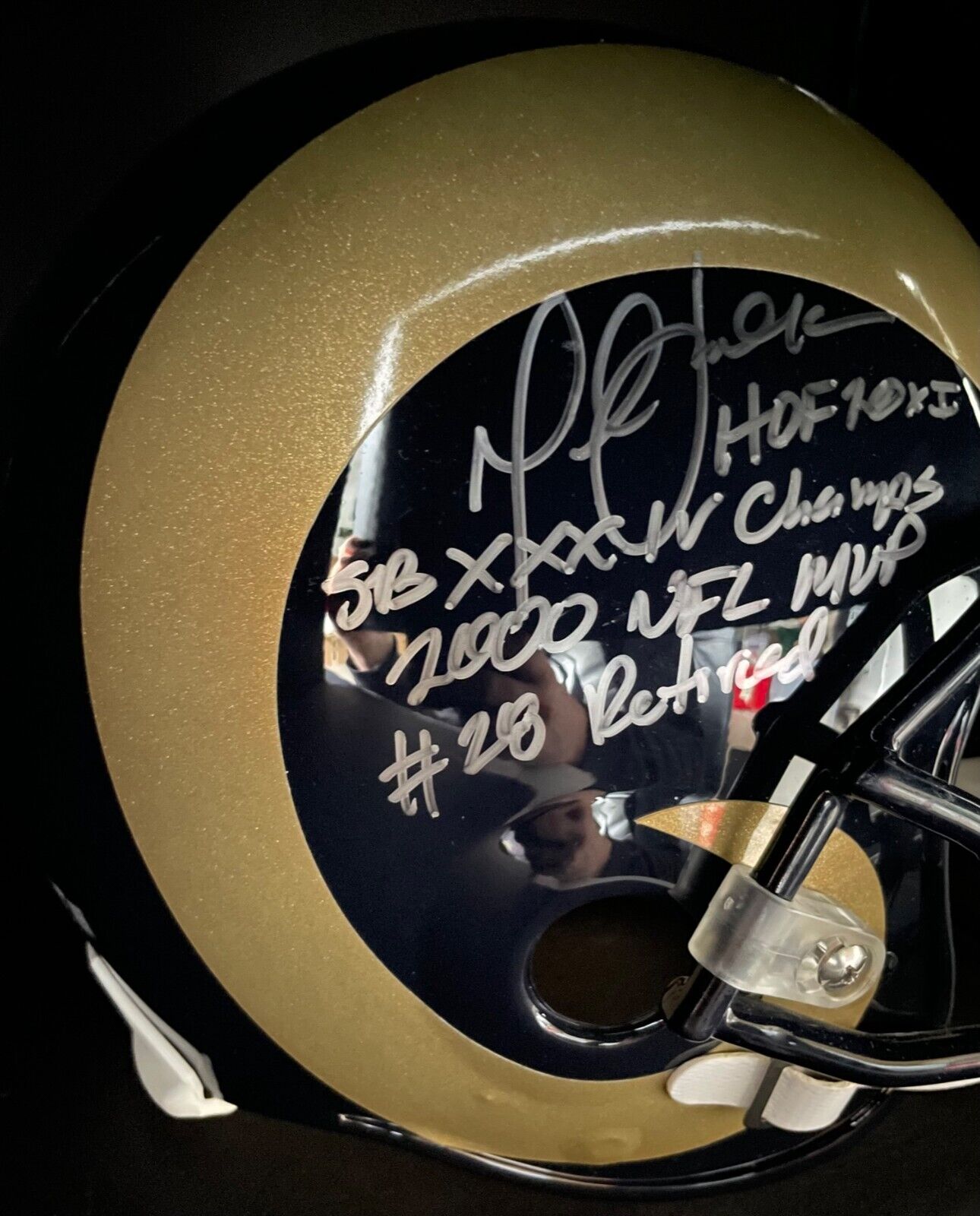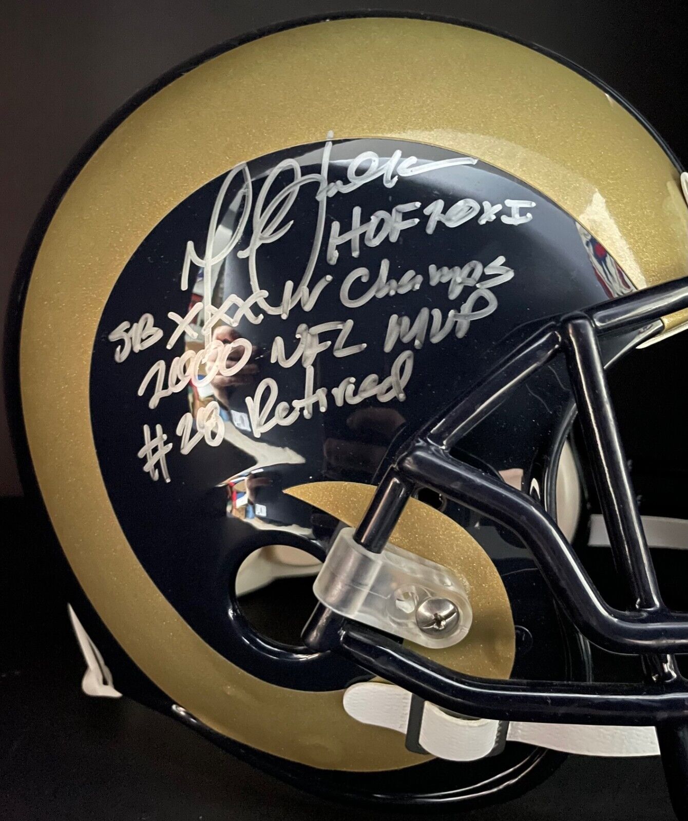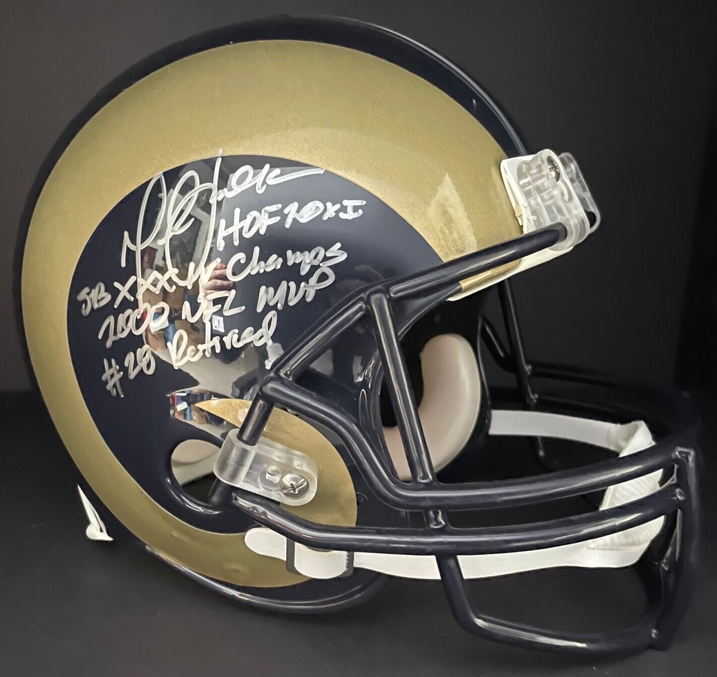 - Inscriptions include HOF 2011, SBXXXIV Champs, 2000 NFL MVP, and #28 retired