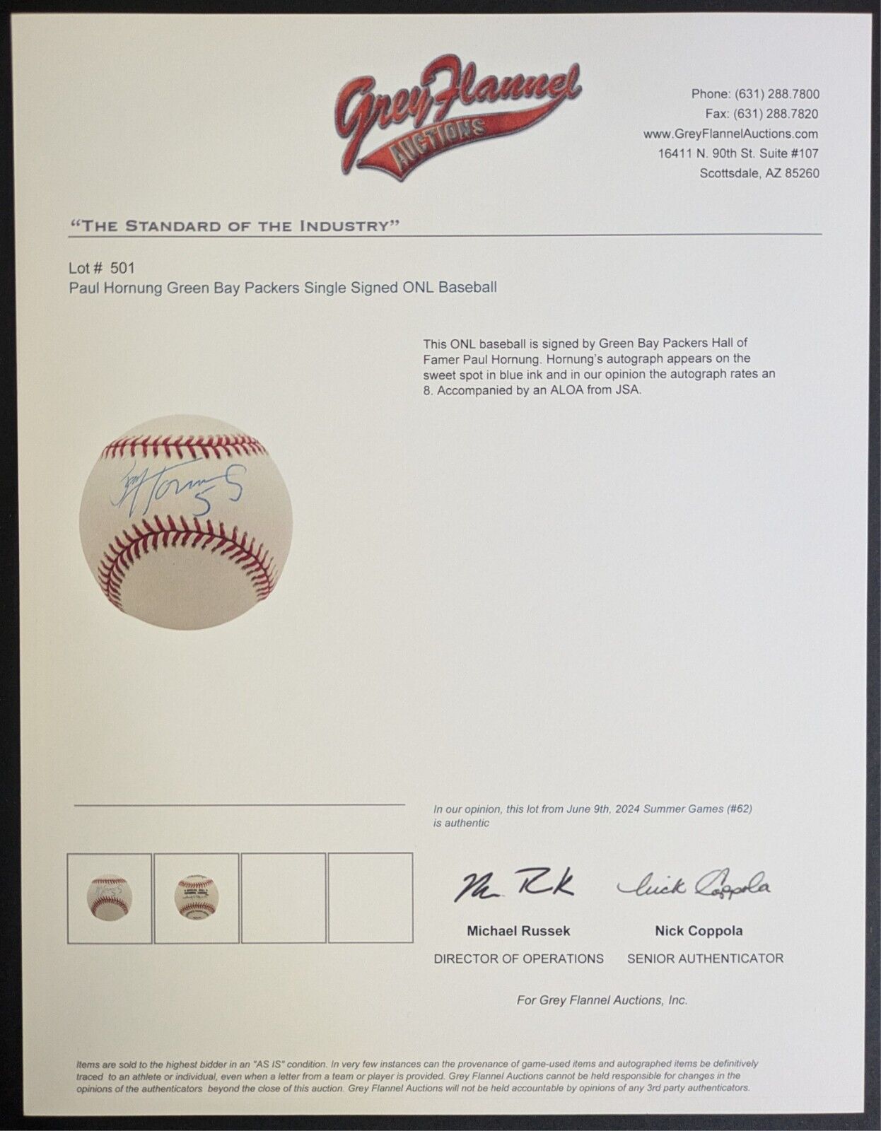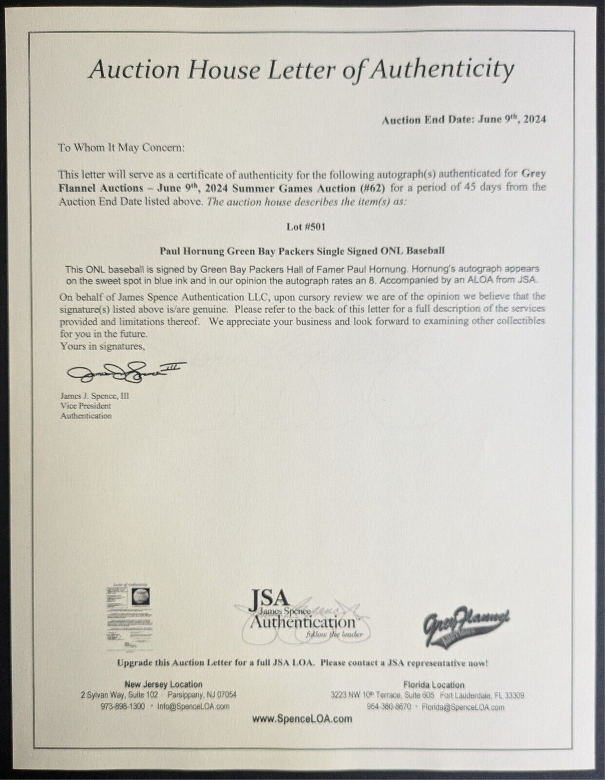 • Authenticated by JSA and Grey Flannel Auctions, auction house letters included