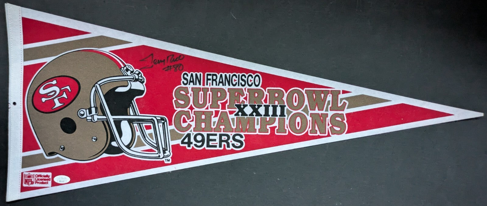 • San Francisco 49ers #80 Jerry Rice Signed Super Bowl XXIII Pennant JSA