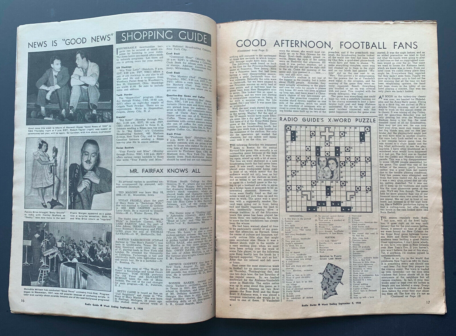 - Original and rare September 1938 Radio Guide featuring recaps of the 1937 football season "World Champion Redskins"